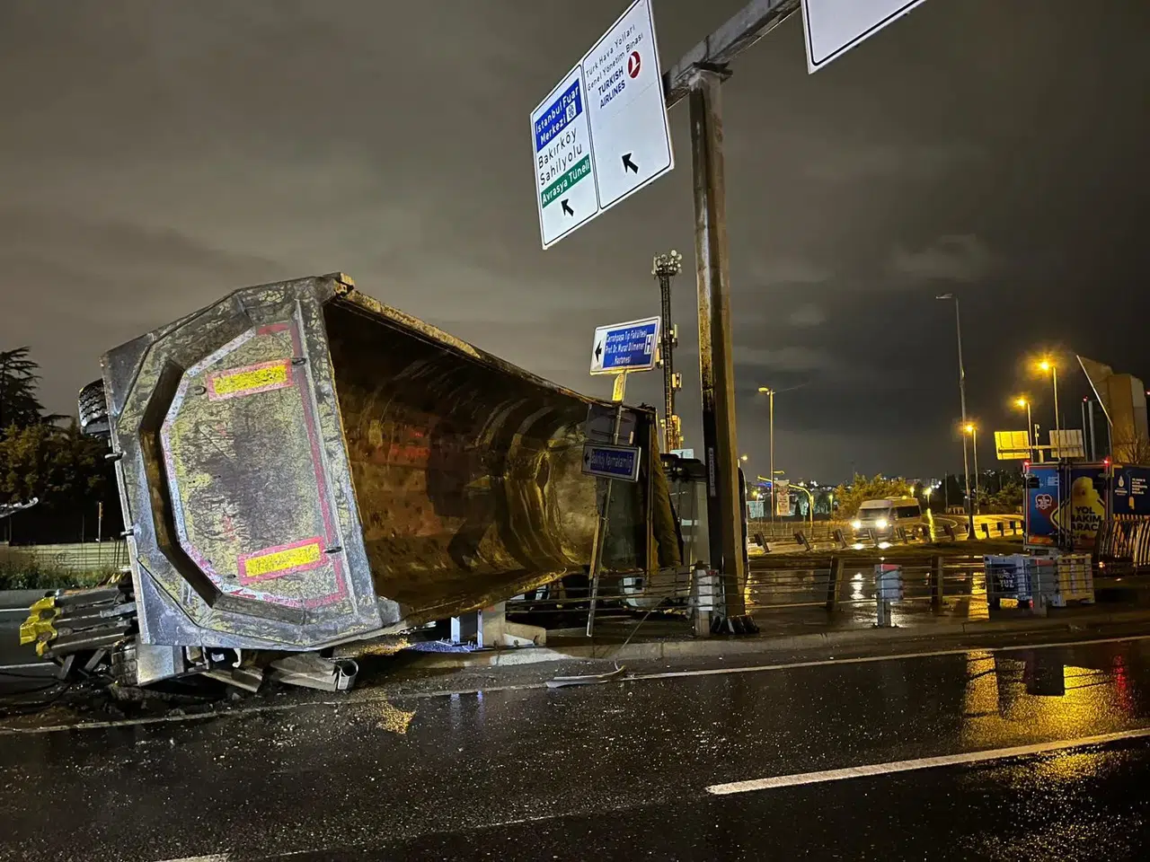 Olay, İstanbul Bakırköy Yeşilköy Mahallesi Atatürk Havalimanı Yolu üzerinde meydana geldi. İddiaya göre seyir halindeki 34 GRH 432 plakalı hafriyat kamyonu sürücüsü, yağmur sebebiyle kayganlaşan yolda direksiyon hakimiyetini kaybedip bariyere çarparak devrildi.