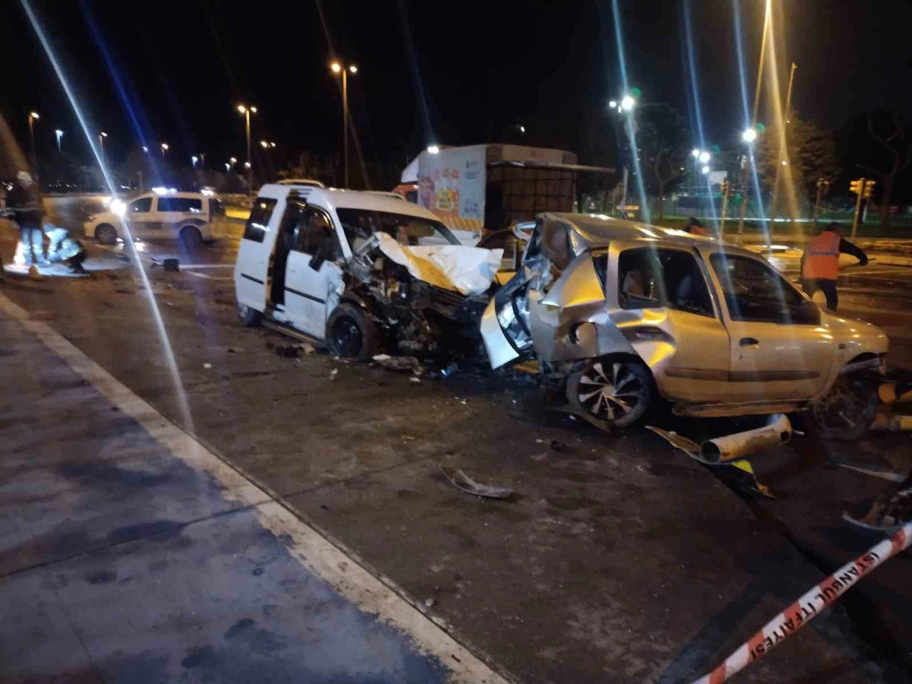 Çarpışmanın şiddetiyle savrulan otomobil, yol kenarında bulunan trafik lambasına çarparak durabildi. Kazada trafik lambası yerinden sökülerek yola devrilirken, her iki araçta da büyük hasar oluştu.