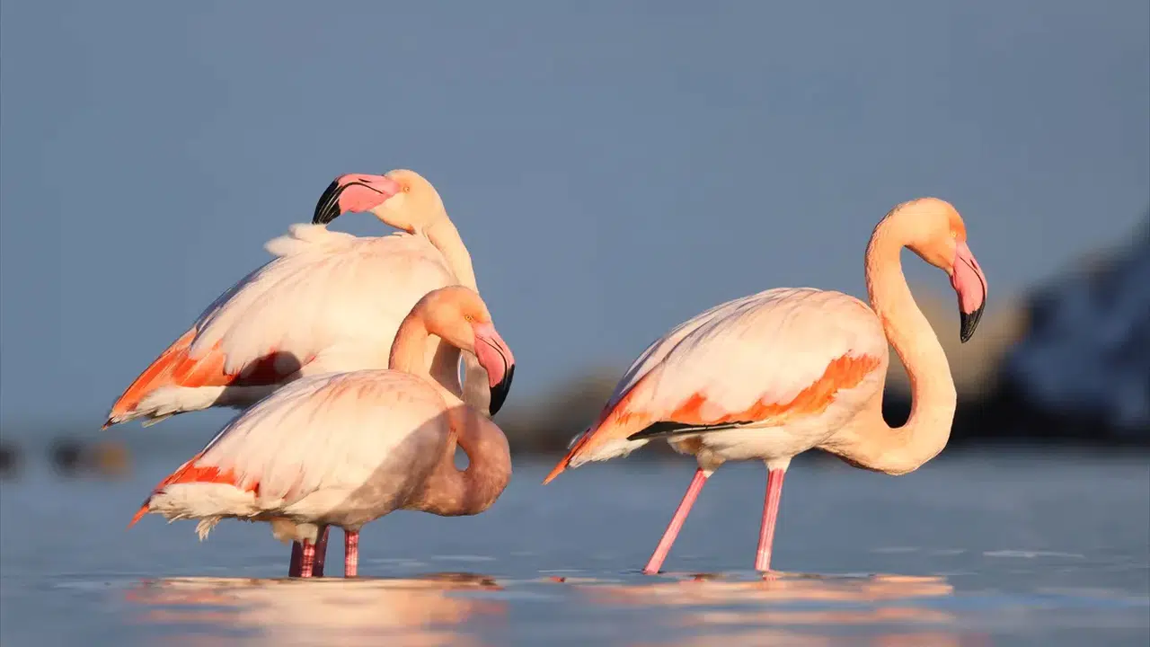 Halk arasında “allı turna” olarak bilinen flamingolar, pembe renklerini beslendikleri karides ve alglerde bulunan pigmentlerden alıyor.