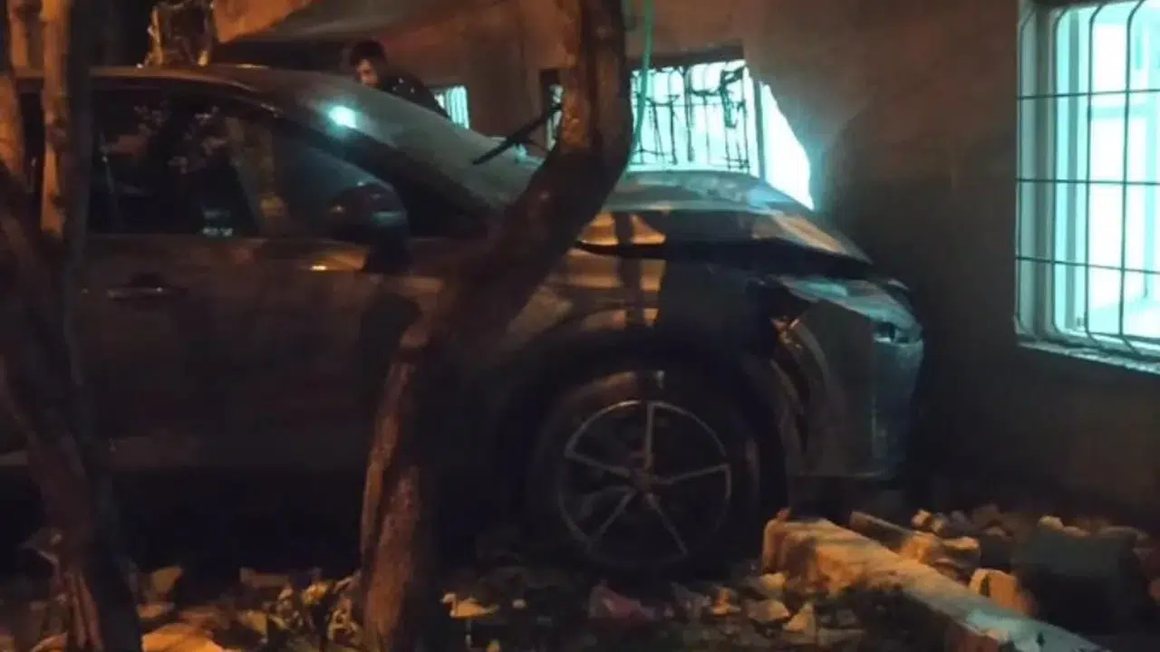 Otomobil bahçe duvarını yıktı