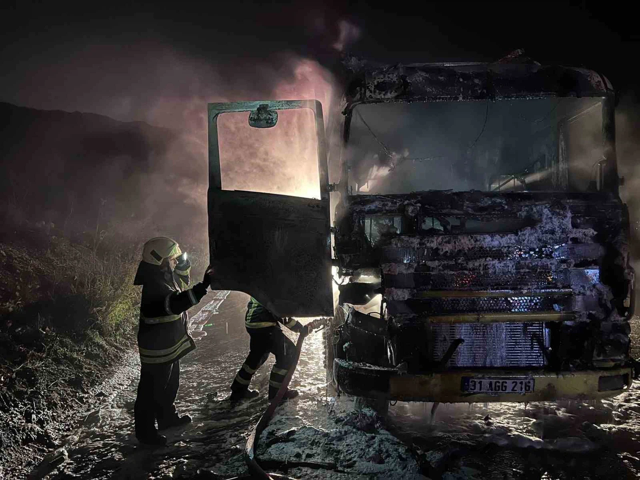 İhbar üzerine olay yerine Hatay Büyükşehir Belediyesi’ne bağlı itfaiye ekipleri sevk edildi. Kısa sürede bölgeye ulaşan ekipler, yangına müdahale ederek alevleri kontrol altına aldı. Yangın söndürülürken, olayda herhangi bir can kaybı ya da yaralanma yaşanmadı. Ancak tır, çıkan yangın sonucu tamamen kullanılamaz hale geldi.