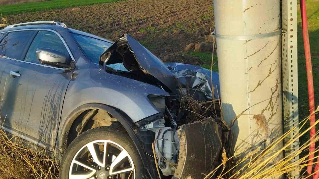 Kontrolden çıkan araç şarampole yuvarlandıktan sonra, yol kenarındaki bir direğe çarparak durabildi.