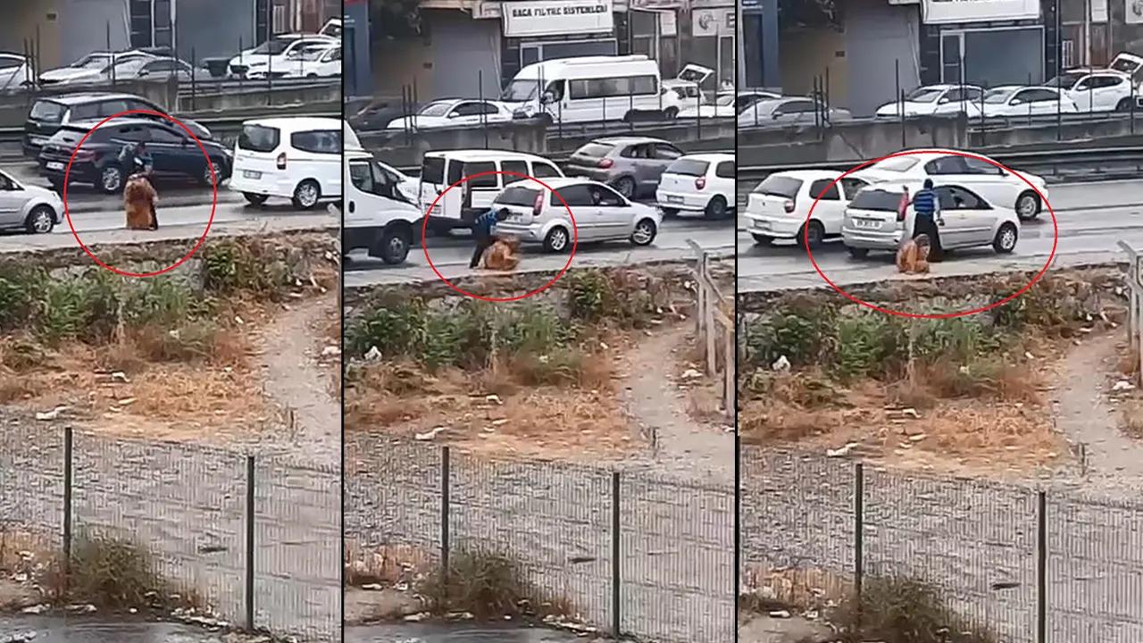 Bursa'da bir kişi, yol kenarında, elindeki kemerle kadını darbetti. Şüpheli, kendisine engel olmak isteyen sürücülere de tepki gösterirken, o anlar cep telefonuyla kaydedildi.