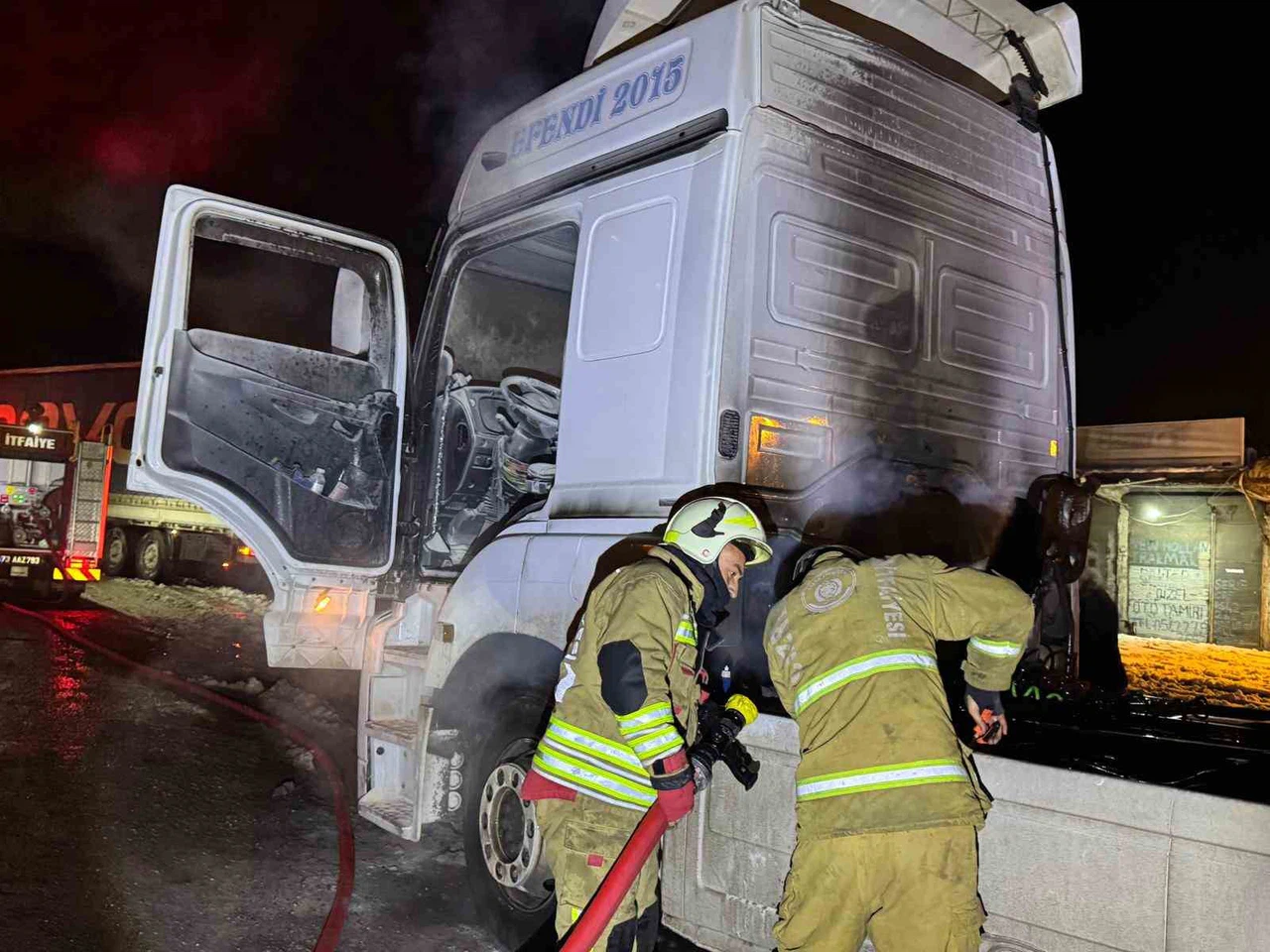 Araçtan alevlerin yükseldiğini gören Tır sürücüsü, aracı yol kenarına çekerek durumu itfaiyeye bildirdi. 112 Acil Çağrı Merkezine yapılan ihbar üzerine bölgeye sevk edilen itfaiye ekipleri tarafından söndürülen yangından sonra TIR’da büyük çapta maddi hasar oluştu. Olayla ilgili inceleme başlatıldı.