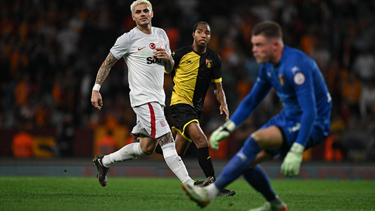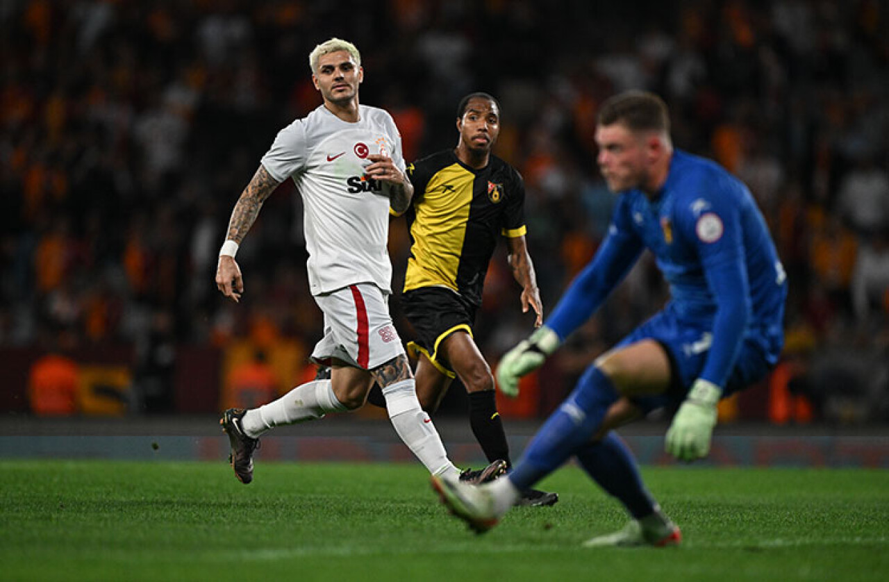 42. dakikada Galatasaray öne geçti. Soldan gelişen atakta Kerem Aktürkoğlu, ceza sahasına girdikten sonra pasını penaltı noktası gerisindeki Icardi'ye aktardı. Arjantinli yıldız, topu düzelttikten sonra yaptığı vuruşla ağları havalandırdı: 0-1.