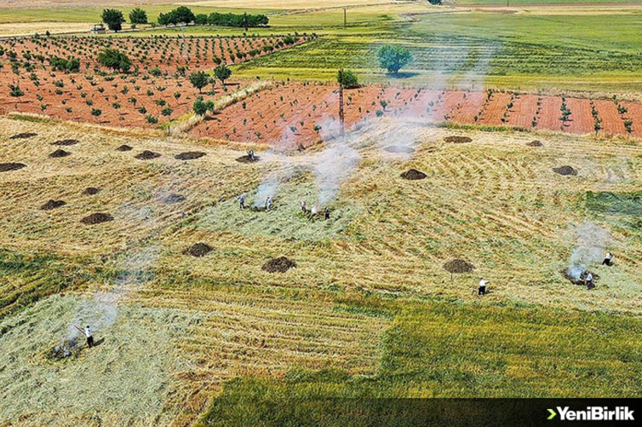 Güneydoğunun tahıl ambarı olarak ifade edilen Araban Ovası'nda çiftçiler, ilkbaharın yaza döndüğü dönemde yeşil buğday başaklarını biçiyor. Küçük yığınlar halinde toplanan başaklar, bir gün kurumaya bırakıldıktan sonra tarlada ateşle kavruluyor.