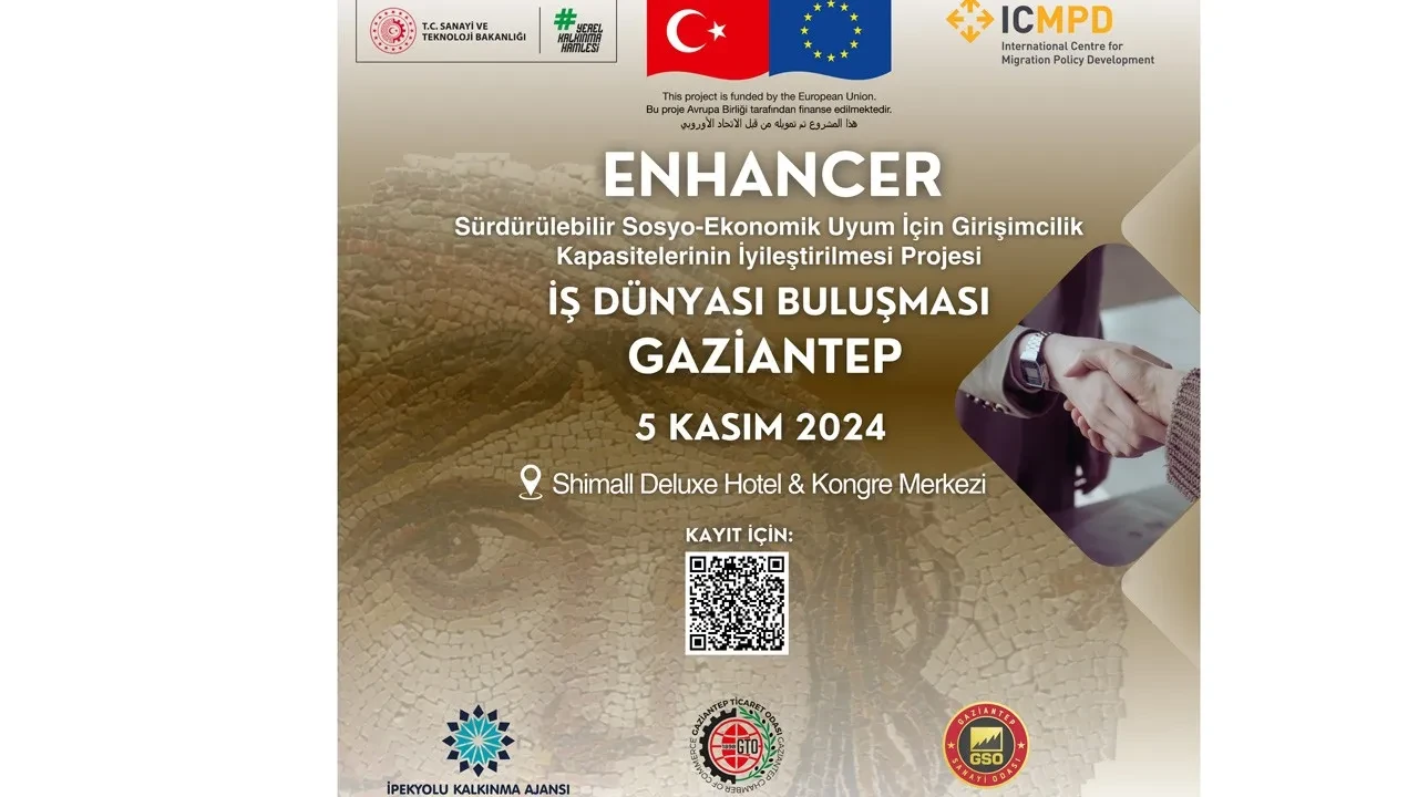 Avrupa Birliği tarafından finanse edilen ve Uluslararası Göç Politikaları Geliştirme Merkezi (ICMPD) tarafından, T.C. Sanayi ve Teknoloji Bakanlığı Kalkınma Ajansları Genel Müdürlüğü işbirliği ile yürütülen “Sürdürülebilir Sosyo-Ekonomik Entegrasyon için Girişimcilik Kapasitelerinin iyileştirilmesi (ENHANCER)” projesi kapsamında 5 Kasım tarihinde Gaziantep Shimall Deluxe Otel’de düzenlenecek olan İş Dünyası Buluşması gıda ve tarım, kağıt, kimya, ambalaj ve paketleme, plastik, ilaç, perakende, tekstil ve makine sektörlerinde alıcı ve tedarikçi firmaları biraraya getiriyor.