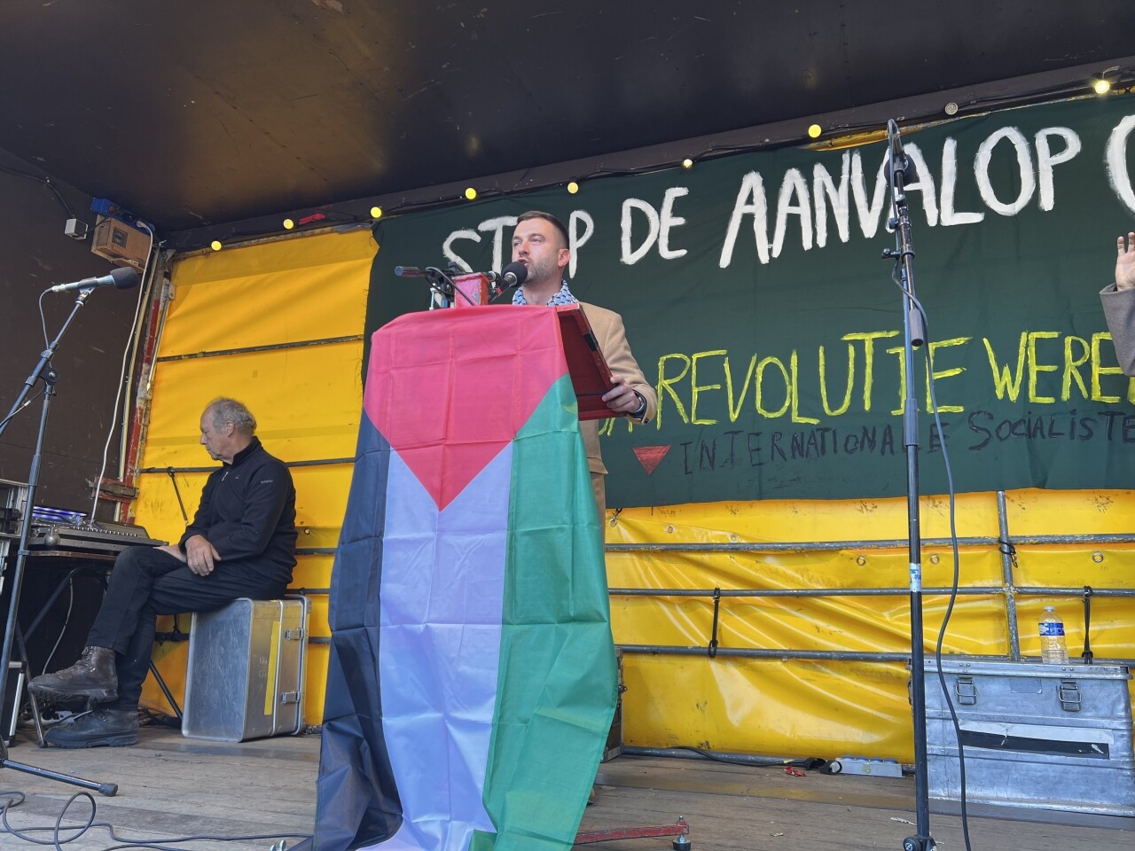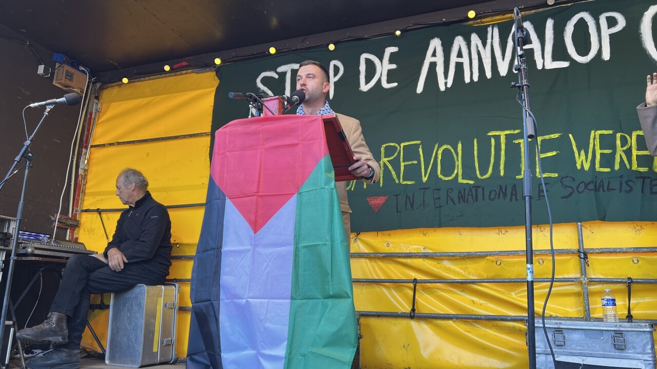 Göstericilere hitap eden Denk Partisi Meclis Grup Başkanı ve Milletvekili Stephan van Baarle, Hollanda'nın da aralarında bulunduğu pek çok Batılı hükümetin, Filistin'de yaşanan soykırımın suç ortağı olduğunu belirtti.