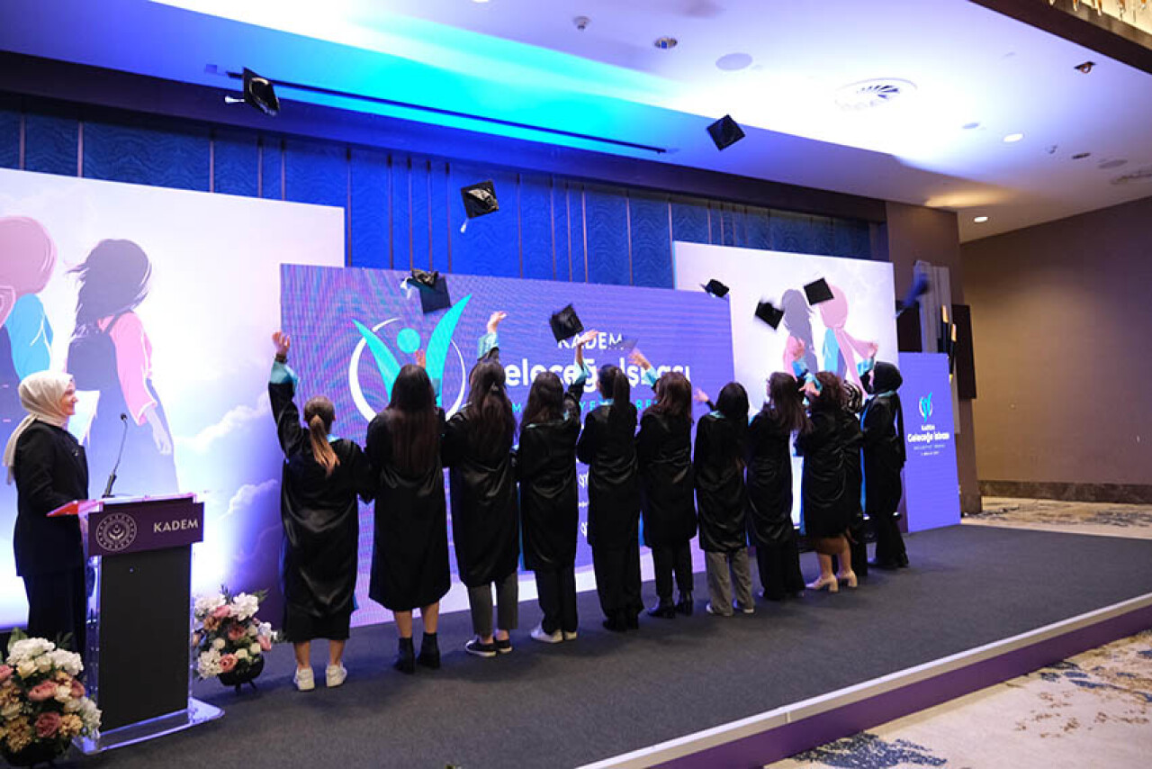 Altı aylık eğitim dönemini tamamlayan genç kızların mezuniyeti için Ataşehir Sheraton Hotel’de düzenlenen törene, Aile ve Sosyal Hizmetler Bakanı Mahinur Özdemir Göktaş, Kadın ve Demokrasi Vakfı (KADEM) Mütevelli Heyet Başkanı Sümeyye Erdoğan Bayraktar, KADEM Yönetim Kurulu Başkanı Doç. Dr. Saliha Okur Gümrükçüoğlu, Türk Telekom CEO’su Ümit Önal ile proje ekibi, paydaş kurumların temsilcileri ve davetliler katıldı.