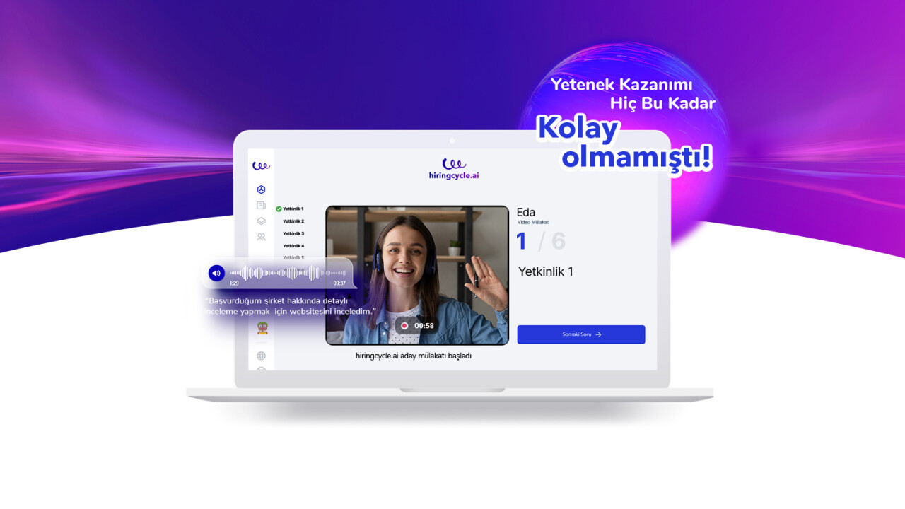 hiringcycle.ai ile yapılan bir videolu yapay zeka mülakatında adayın yanıtları 21. yüzyıl yetkinliklerine göre cümlelerle analiz edilir ve sonuçları dakikalar içinde işe alım profesyonellerine iletir. Böylelikle ayda ortalama 144 saat zaman tasarrufu sağlayan işe alım profesyonelleri, bu zamanı stratejik kararlar almaya ve kurum kültürünü iyileştirmeye odaklanarak değerlendirebilirler. Böylece verimlilik artışının yanı sıra, hatalı işe alımların kurumlara getirdiği yüksek maliyetin de önüne geçilmiş olur. Ayrıca İngilizce seviyesinin de global kriterlere göre ölçüldüğü yapay zeka tabanlı video mülakat ile şirketler geleneksel yöntemlerle ölçtükleri İngilizce yetkinliklerini daha hızlı ve daha rahat bir aday deneyimi yaşatarak ölçebilirler.