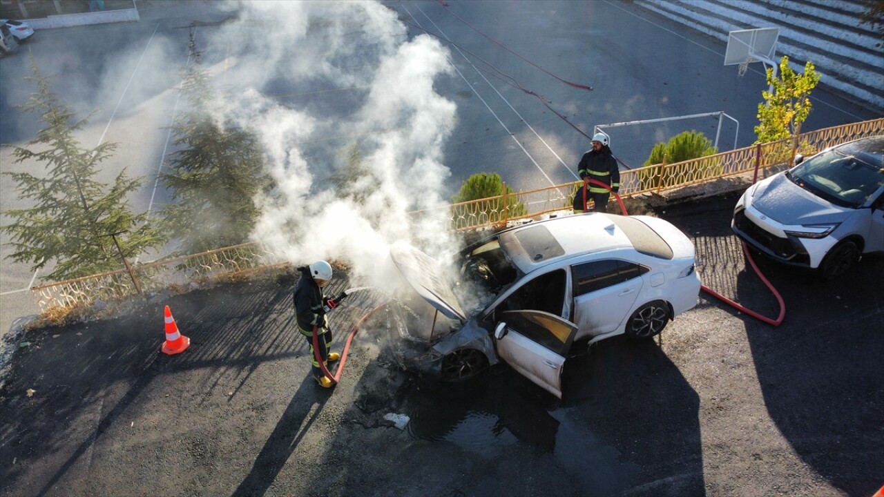 Senaryo gereği aracın motor kısmında yangın çıktı. Öğrencilerden oluşan ekip, kısa sürede olay yerine ulaşarak yangına müdahale etti.