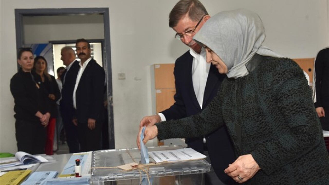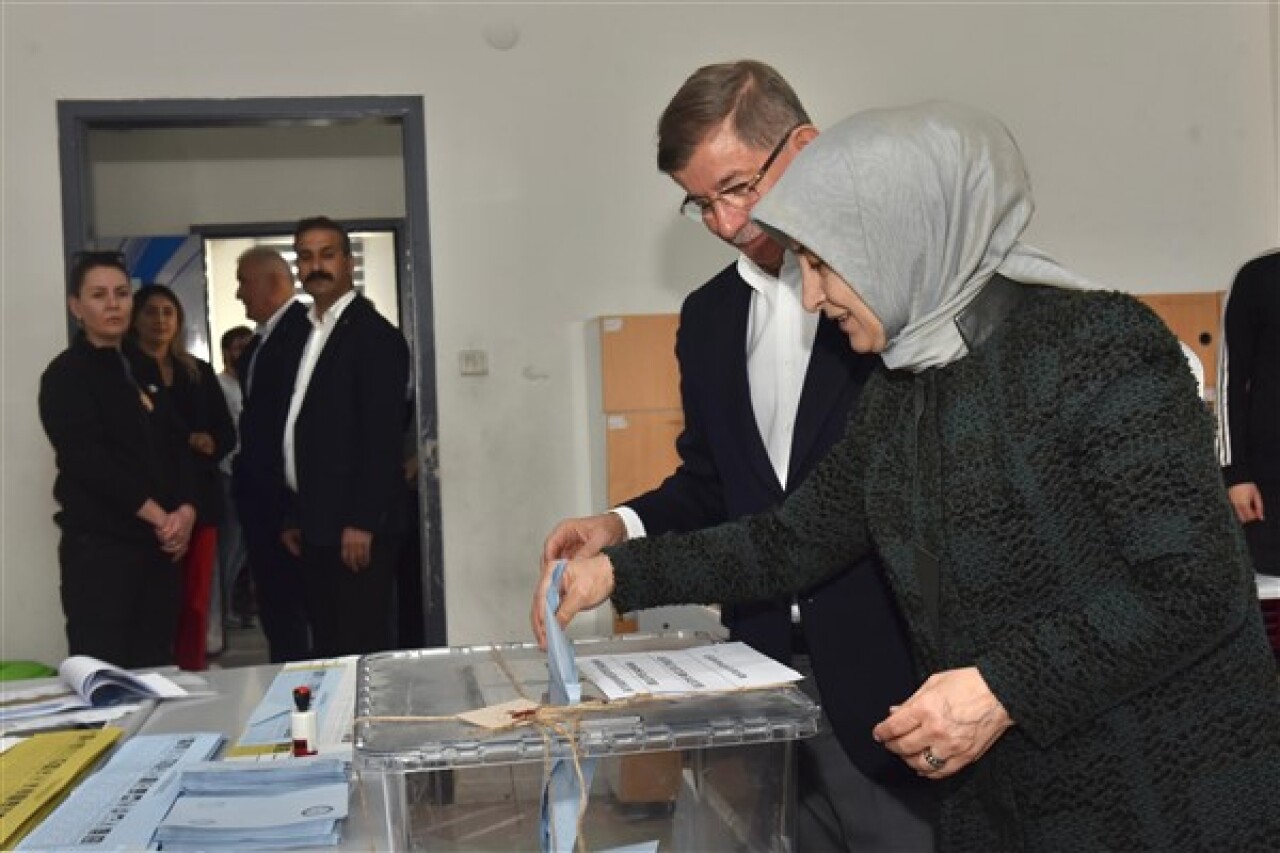 Gelecek Partisi Genel Başkanı Ahmet Davutoğlu, eşi Sare Davutoğlu ile birlikte oyunu İstanbul Göktürk’te bulunan Nejat Sabuncu İlköğretim Okulunda kullandı.