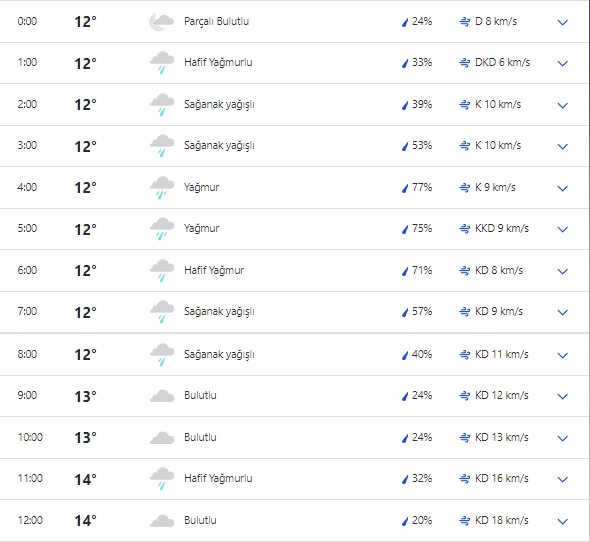 Sıcaklık en yüksek 15, en düşük ise 12 derece olacak. İl genelinde yağmur öğle saatlerine kadar devam edecek. Öğleden sonra yerel olarak yağması bekleniyor. Akşam saat 19:00'dan sonra ise yeniden kuvvetlenerek sağanak yağış şeklinde olacak.