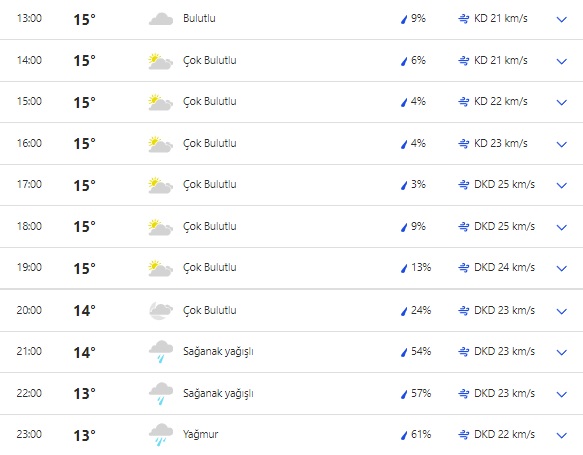 Rüzgar saatte 15 ila 30 km hızla esecek. Lokal olarak sel ihtimalinin yüksek olduğu uyarısı yapıldı. Vatandaşların dikkatli olmaları tavsiye ediliyor.