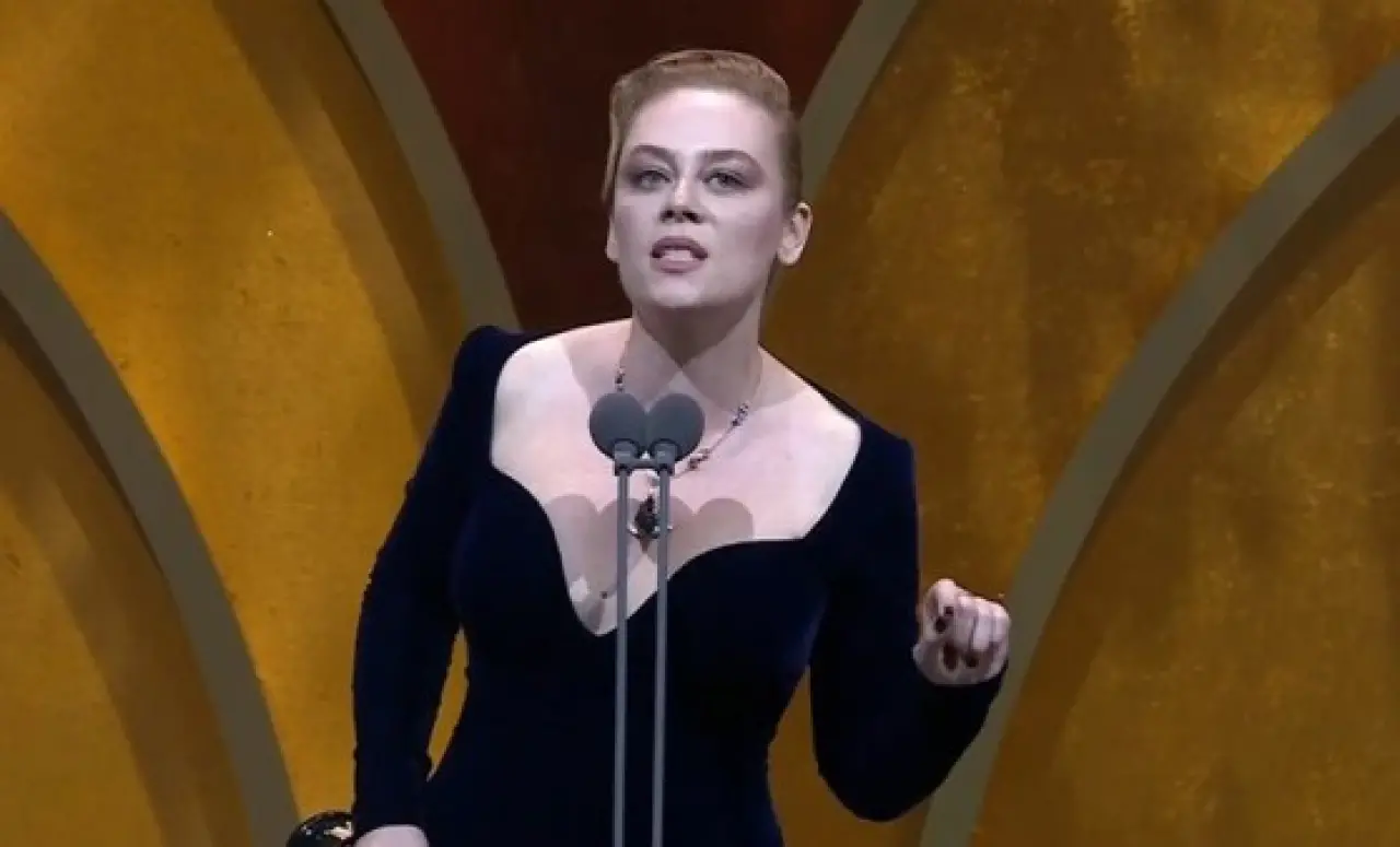En İyi Dizi: İnci Taneleri (Kanal D) İnci Taneleri ekibi adına ödülü Hazar Ergüçlü usta oyuncu Ediz Hun'un elinden aldı.