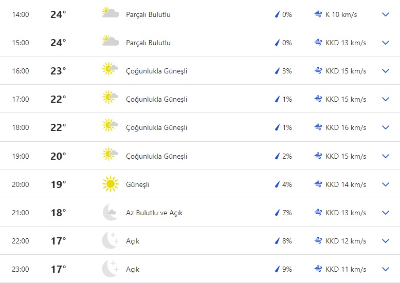 Megakentte en yüksek sıcaklık 25 dereceyi bulurken, en düşük sıcaklık ise 14 dereceye ulaşacak. İstanbul'da rüzgar saatte 10 ila 15 km hızla esecek. Nemin yüzde 60 ölçülmesi bekleniyor.