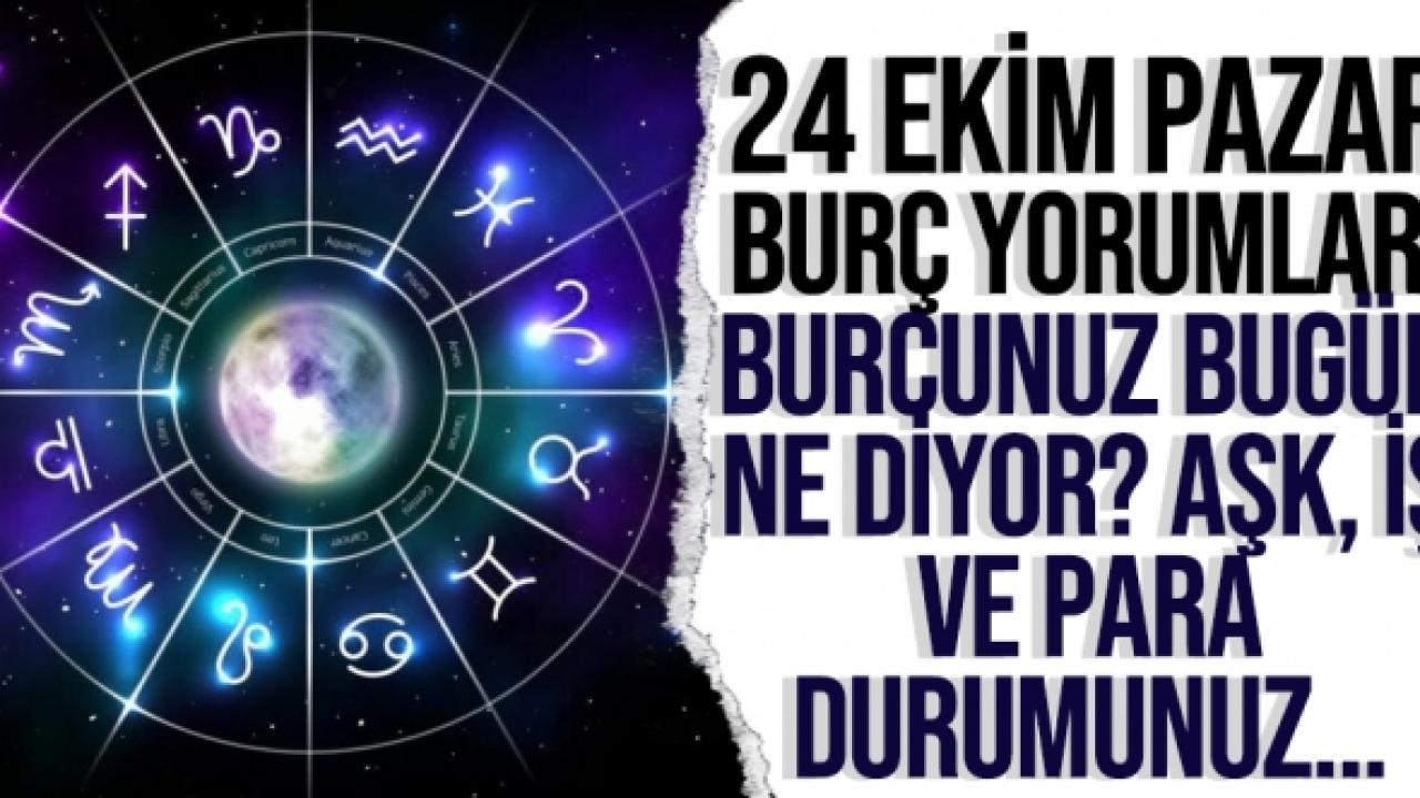 Yaşamınıza dair yeni gelişmeleri öngörebilmek, farklı olayların hayatınıza etkisini sezebilmek ve yaşayabileceğiniz yenilikleri öğrenebilmek için hazır mısınız? İnternet üzerinden derlediğimiz burç yorumları haberimizde yer alıyor. Sizler de iş, para ve aşk falınız hakkındaki tüm detayları okuyabilirsiniz. 24 Ekim 2021 Pazar Koç, Boğa, İkizler, Yengeç, Aslan, Başak, Terazi, Akrep, Yay, Oğlak, Kova ve Balık Burç Yorumları aşağıdadır. İşte detaylar... Sizler de yorumlarınızı yazabilirsiniz.