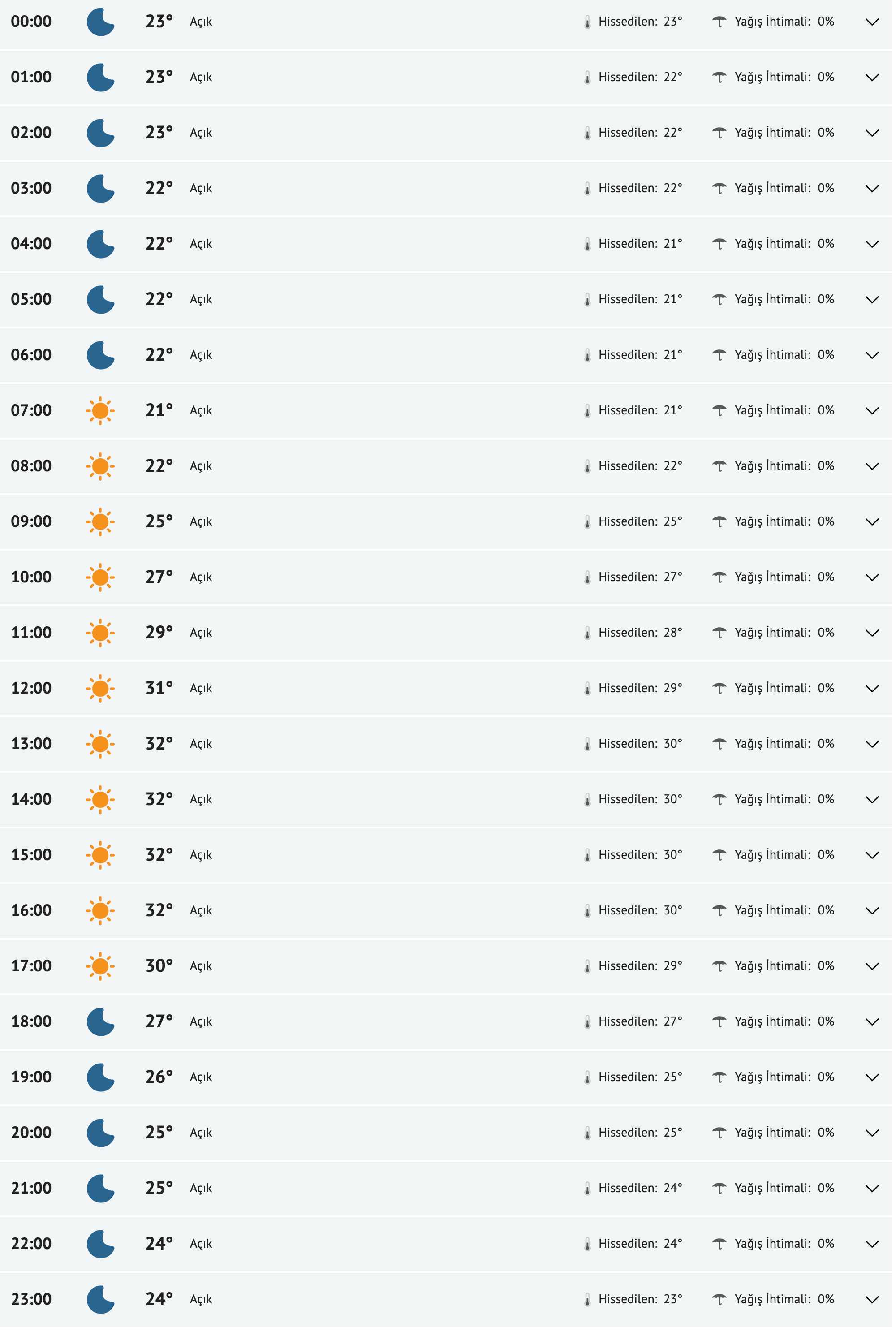Havanın açık, en yüksek sıcaklığın 30° ve en düşük sıcaklığın 20° olması bekleniyor.