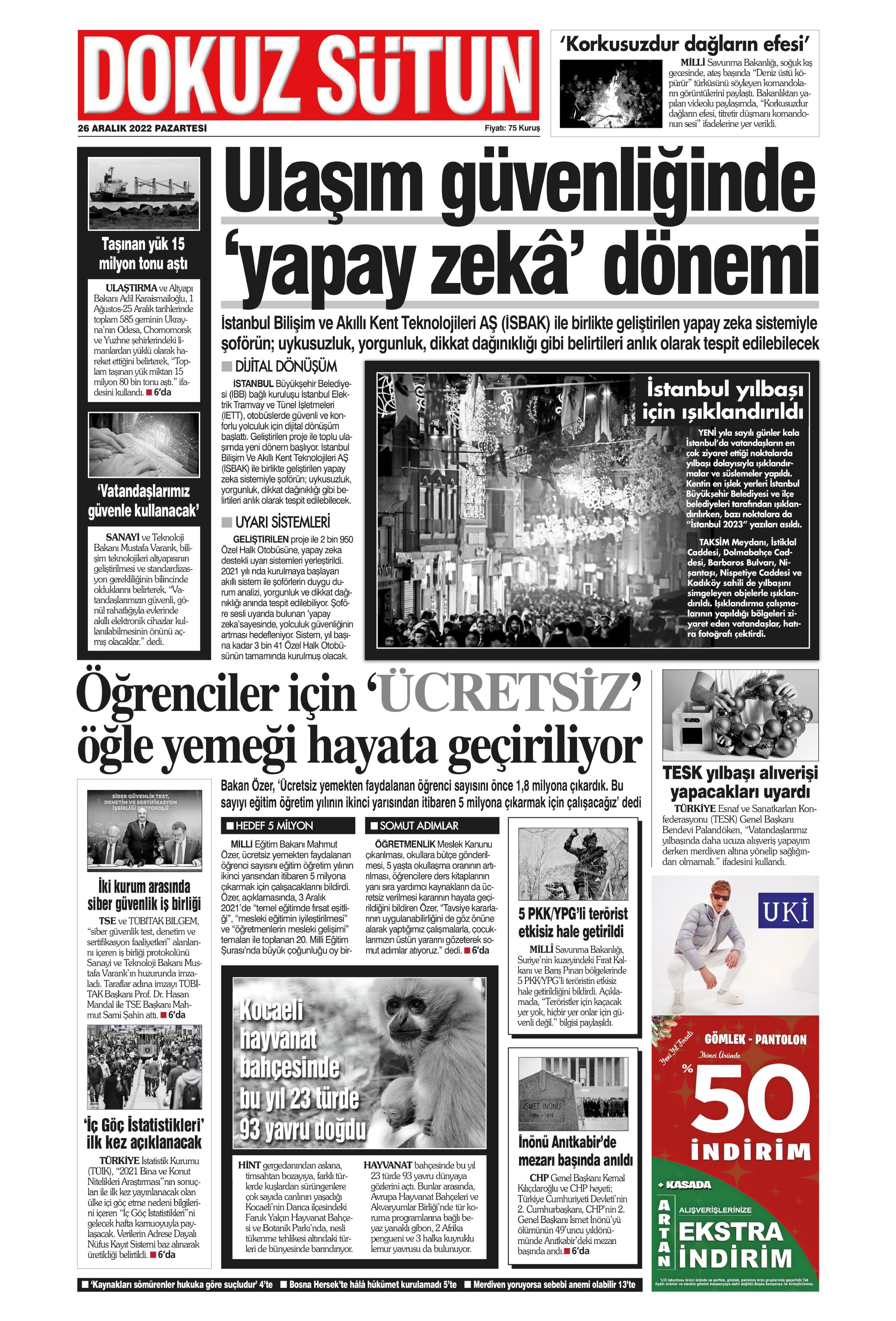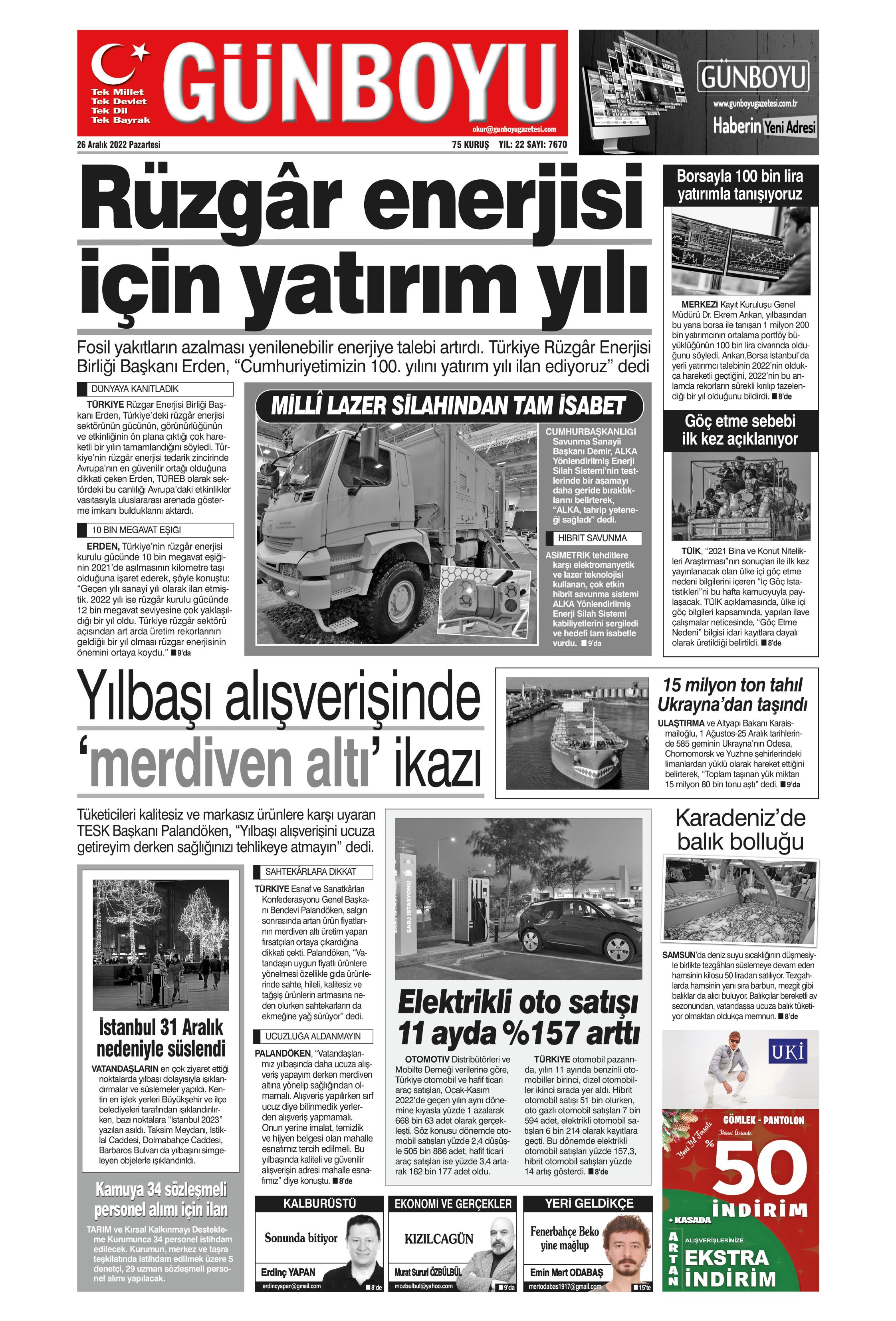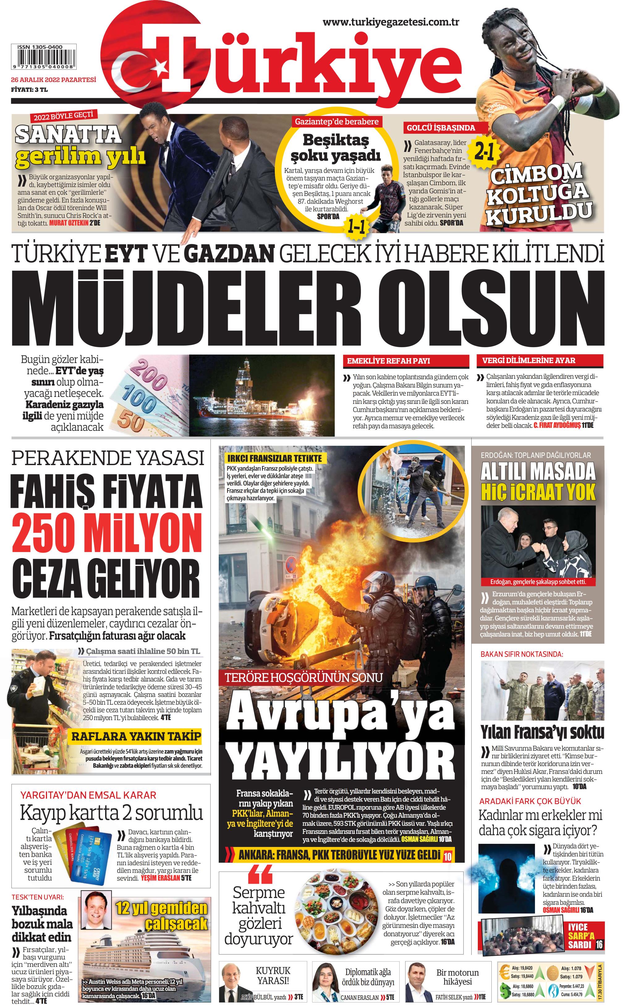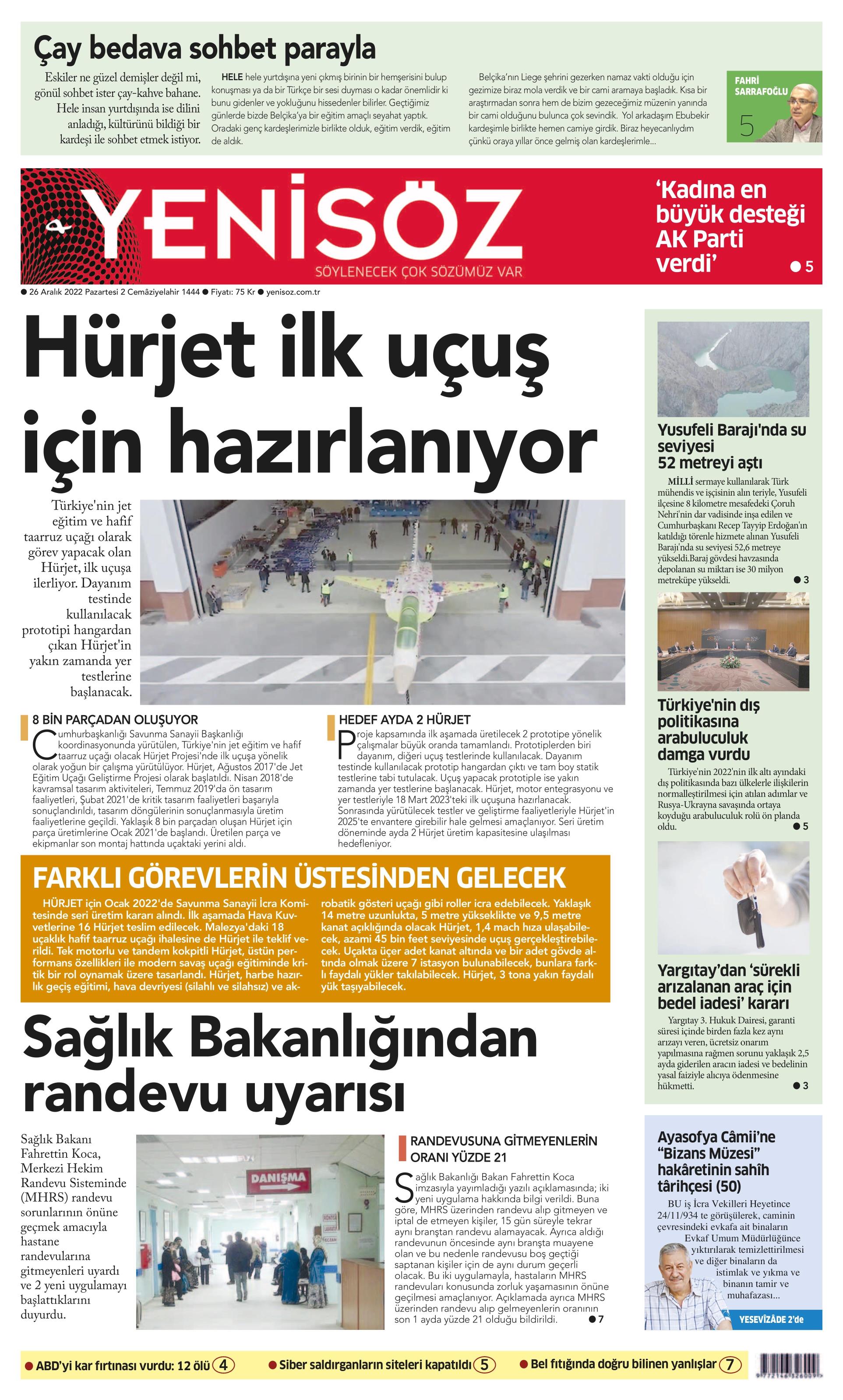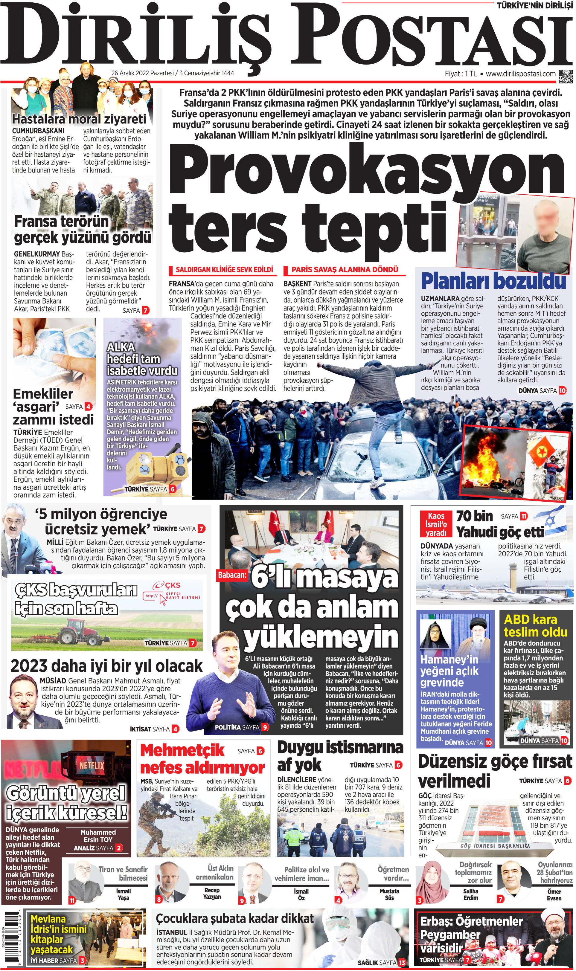Çağımız her ne kadar dijitale yönlense de gazete okumaya devam eden binlerce belki de milyonlarca kişi bulunuyor. Baskının verdiği haz ve haberi yılların getirdiği alışkanlıkla takip etme heyecanını kaybetmeyen çok sayıda okuyucu mevcut. Bunun için de 1. sayfalar önemli. Kurumların gündemi ele alış şekli ve attığı manşetler okunmak isteniyor. Gazete keyfi yaparak güne başlamak isteyenler için 26 Aralık 2022 Pazartesi gününün 1. sayfaları haberimizde yer alıyor.
