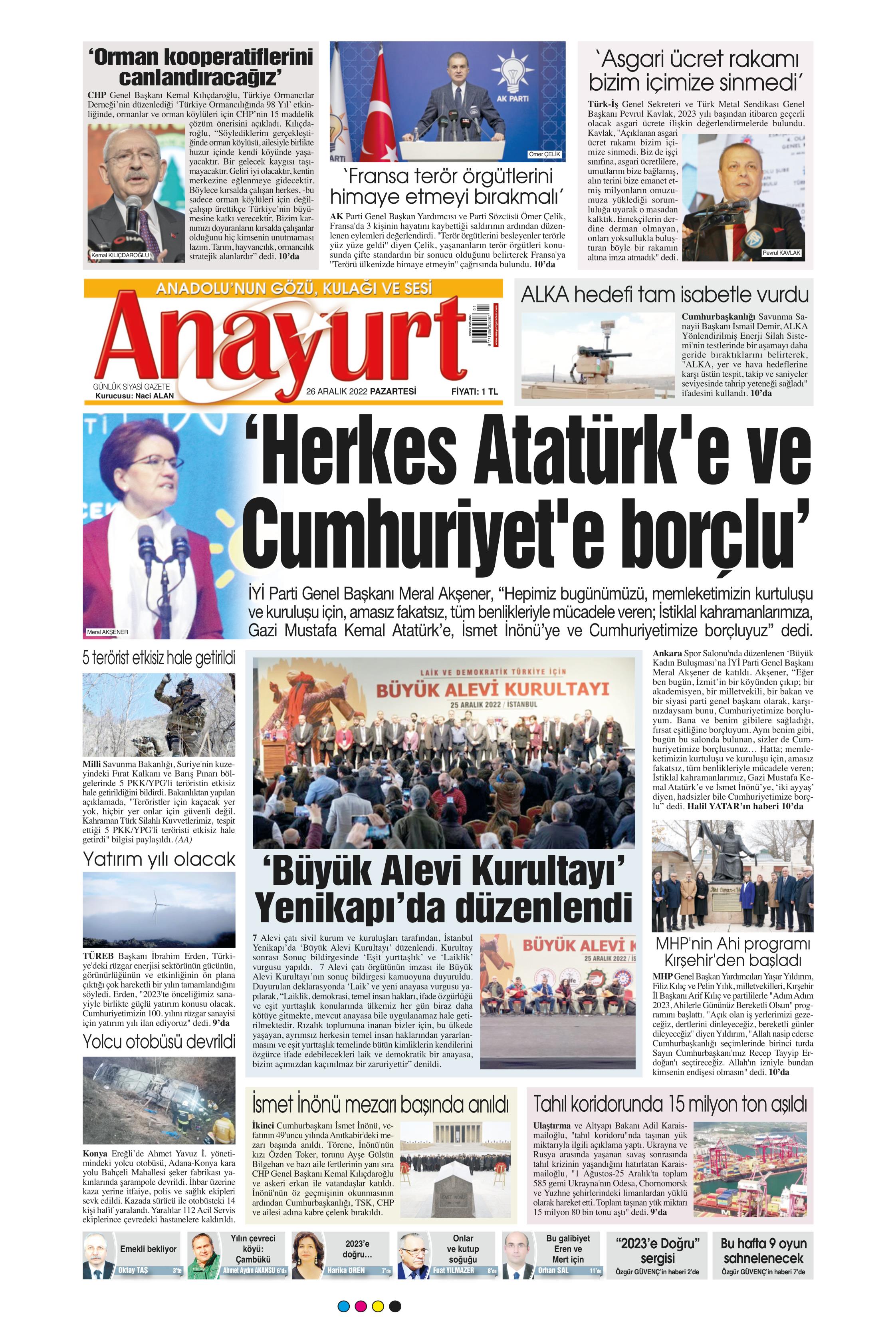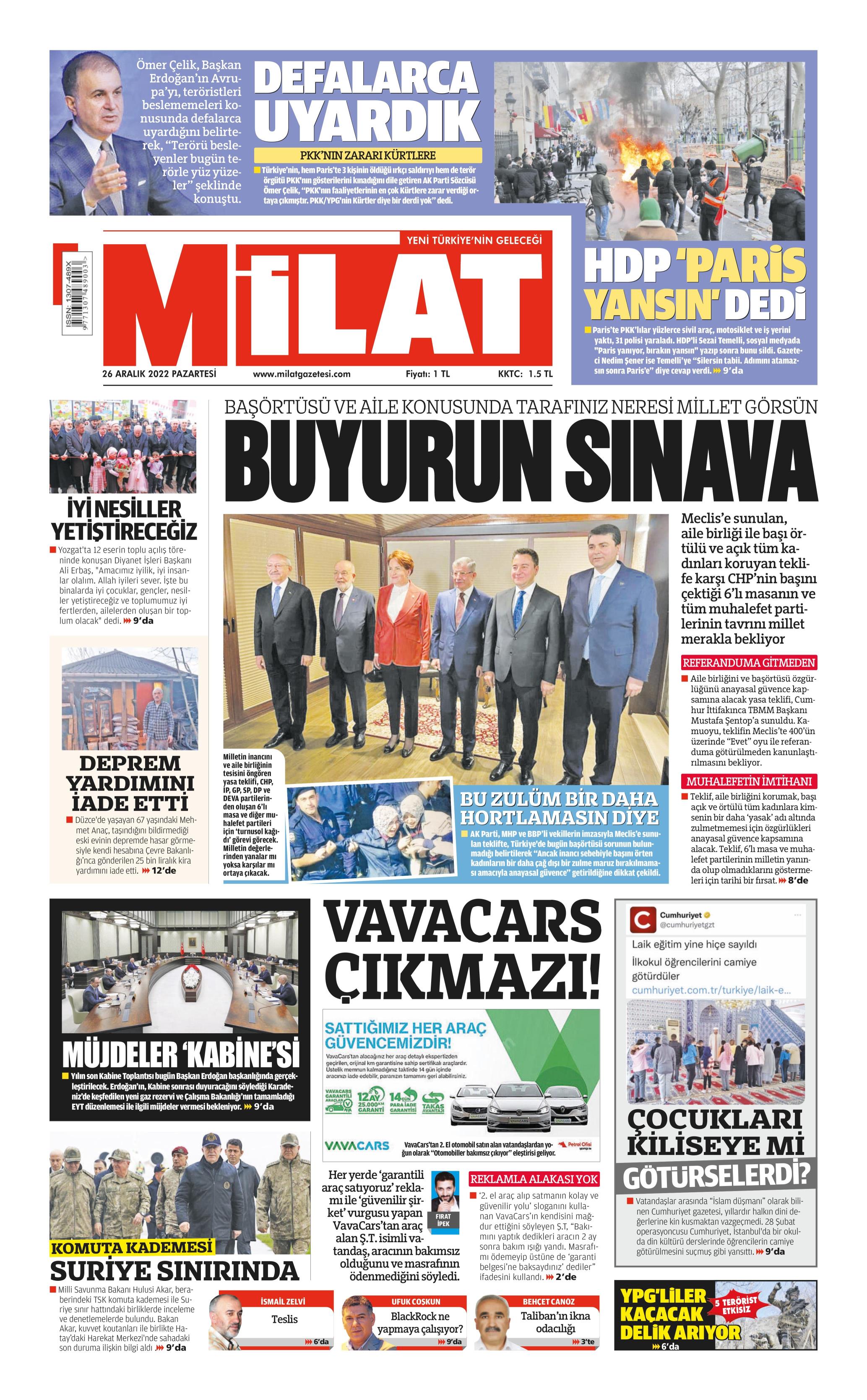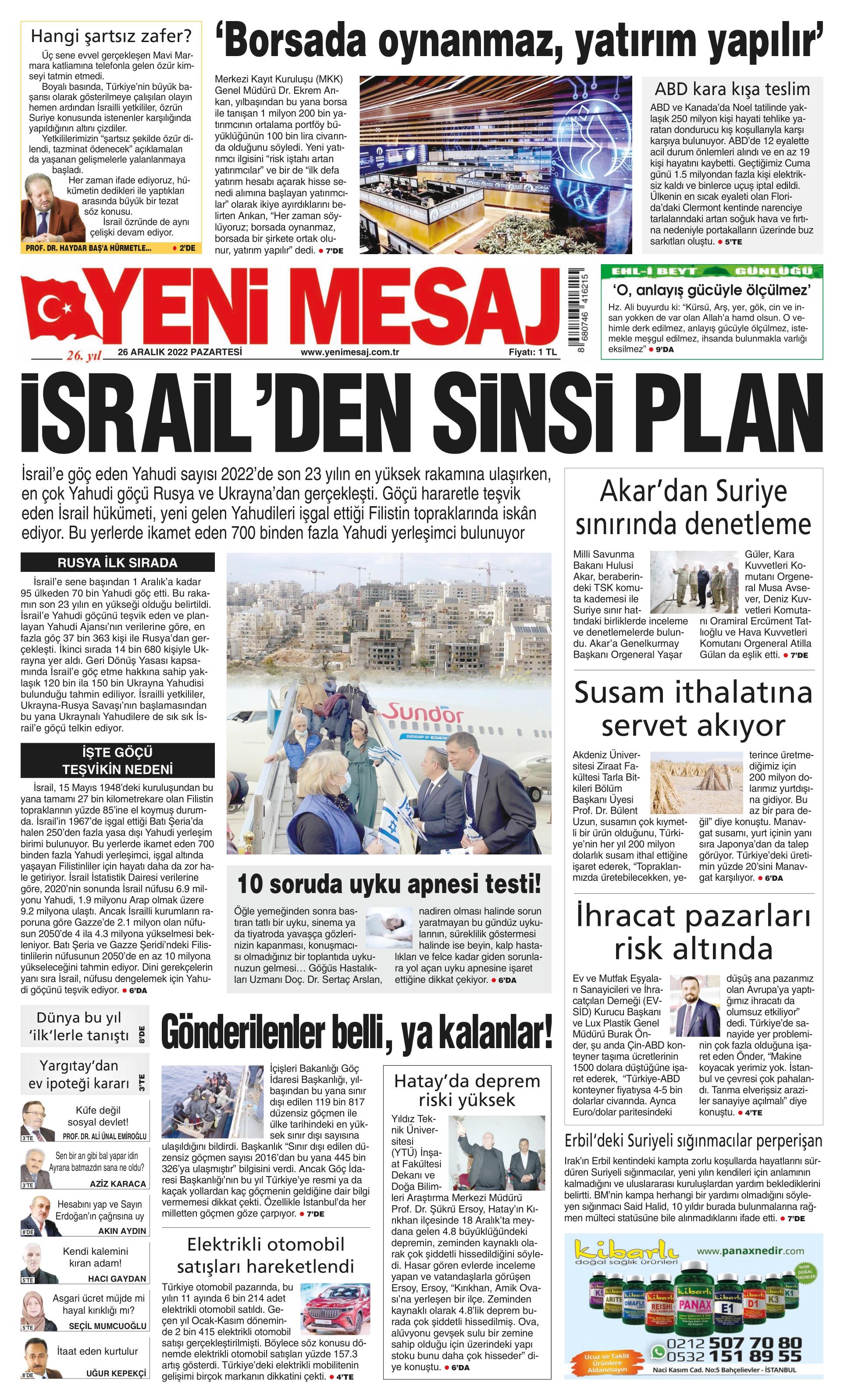 Yeni Birlik Gazetesi Genel 26 Aralık Pazartesi Gazete Oku! Gazete Keyfi 1. sayfalar