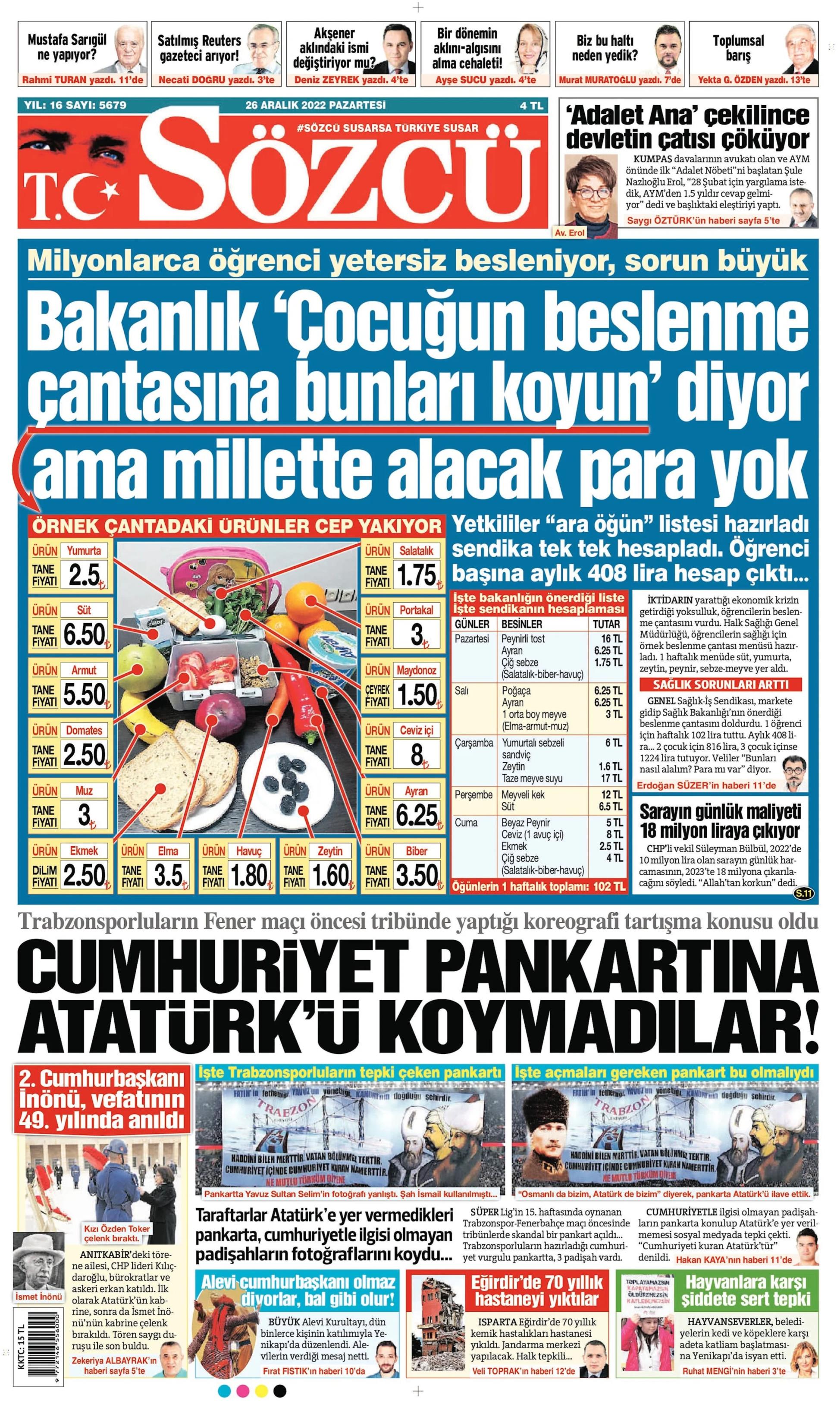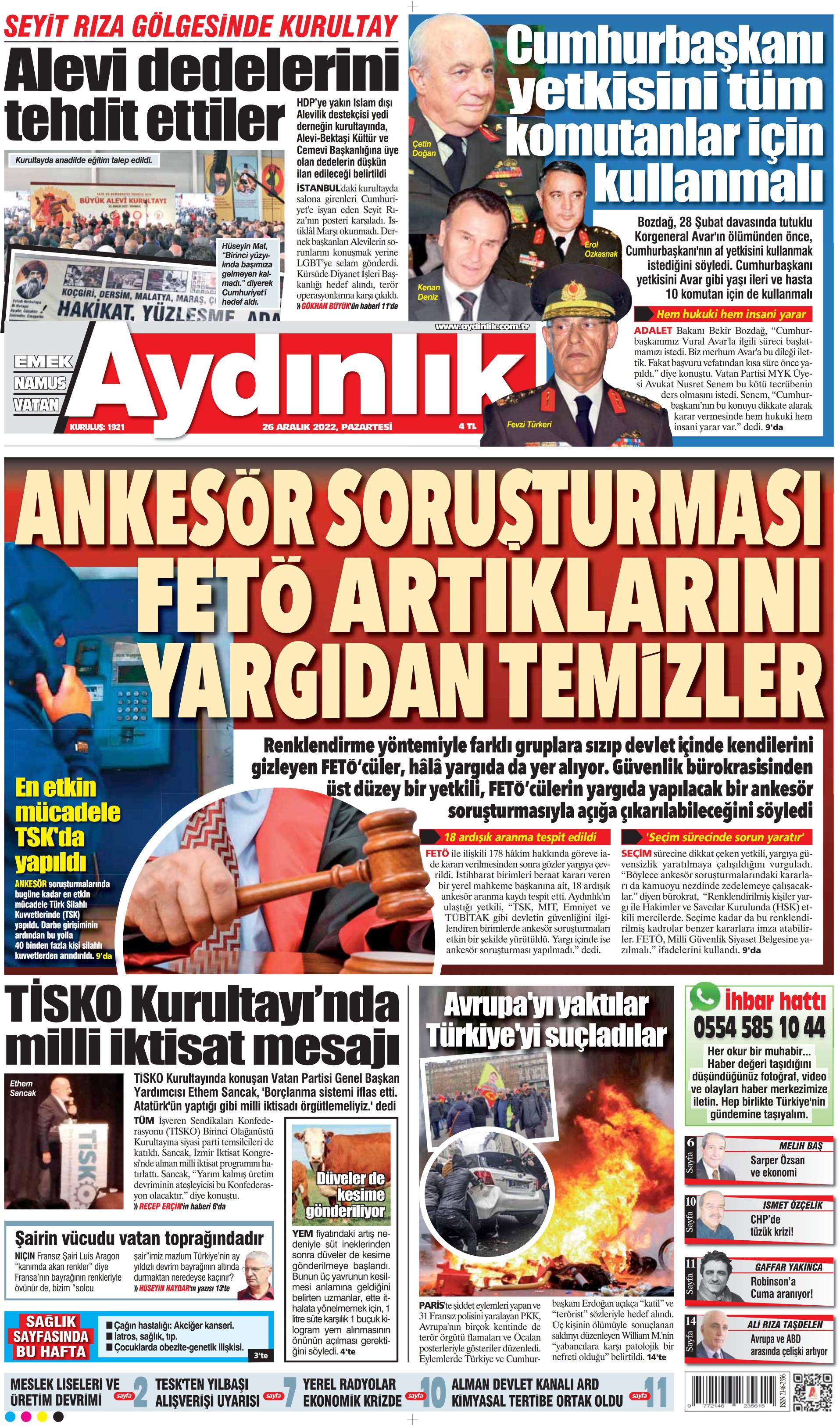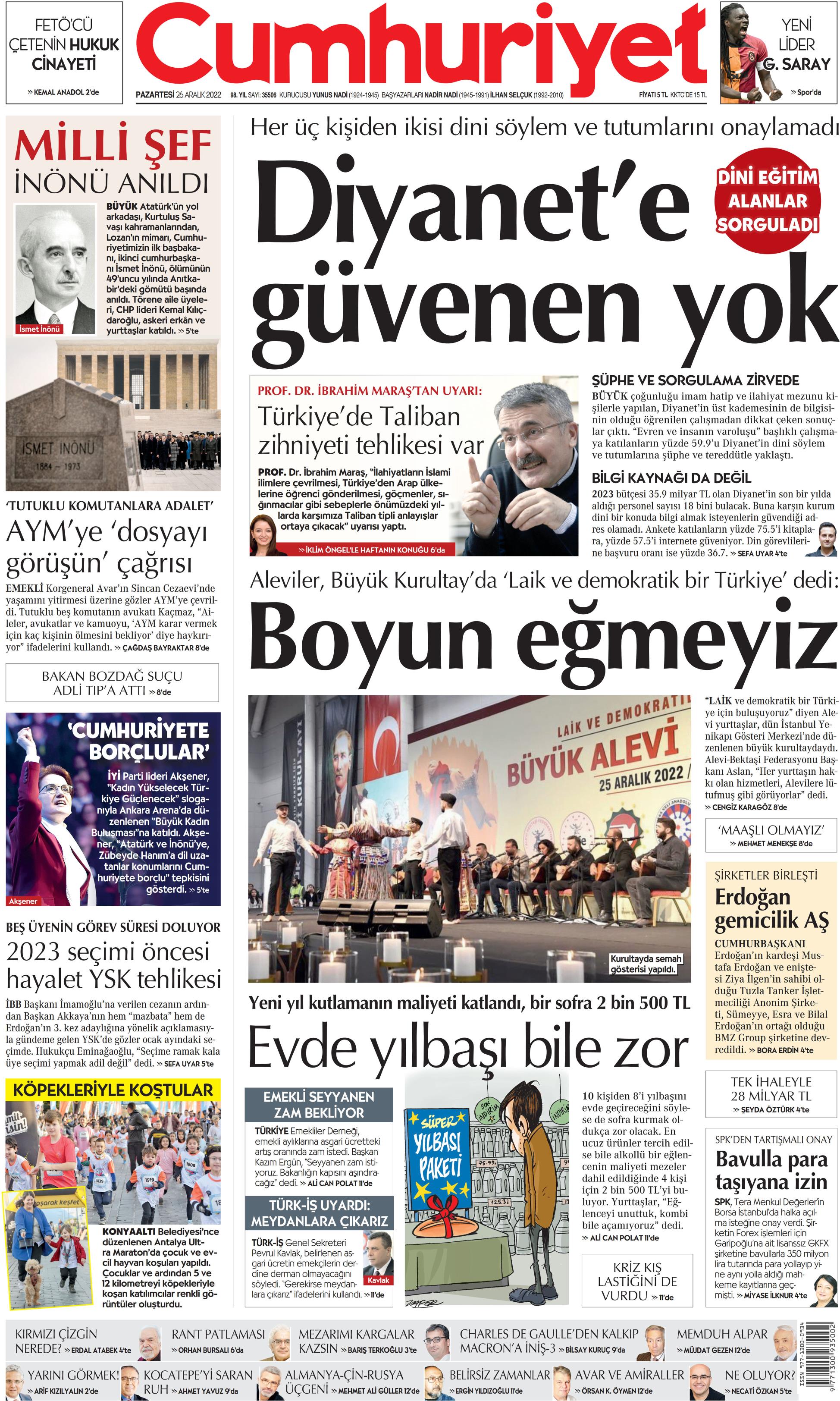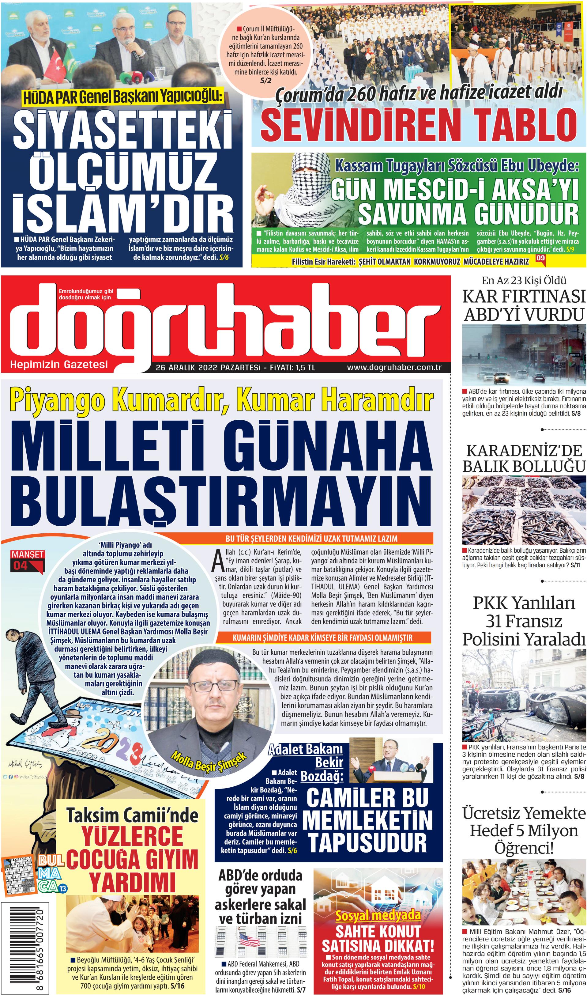 26 Aralık Pazartesi Gazete Oku! Gazete Keyfi 1. sayfalar