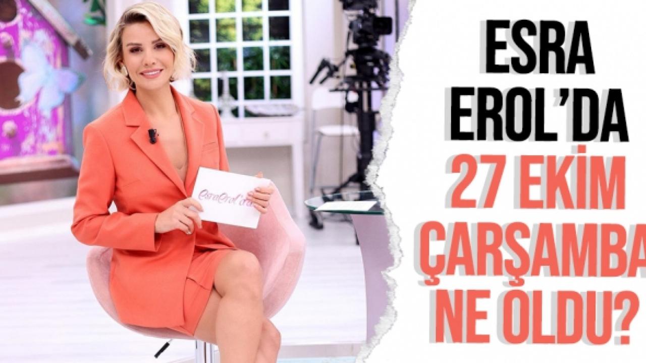 Türkiye'nin en çok seyredilen programlarından biri olmaya devam eden Esra Erol'da yeni bir günde daha izleyicilerin karşısına çıkmayı sürdürüyor. Esra Erol milyonlarca kişi tarafından seyredilen canlı yayında yine adından söz ettirecek konularla birlikte ülke gündemine oturacak. Son bölümde yaşananların herkesi ekran başına kilitlediği anların ardından sıra bugüne geldi. Hafta ortasında yalşanacaklar sabırsızlıkal bekleniyor. Esra Erol'da 27 Ekim Çarşamba tek parça tekrar yayın izle alternatifleri haberimizde. Siz de yorumlarınızı yazabilirsiniz.
