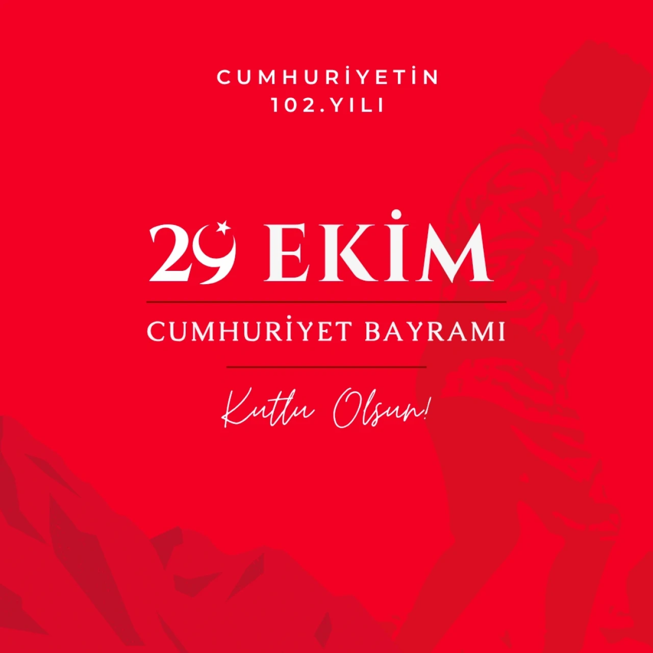- Cumhuriyetimizin kurucusu Gazi Mustafa Kemal Atatürk'ü ve kahraman şehitlerimizi minnetle anıyor, onurlu mirasımızın 102. yılını büyük bir coşkuyla kutluyoruz. 29 Ekim Cumhuriyet Bayramımız kutlu olsun!