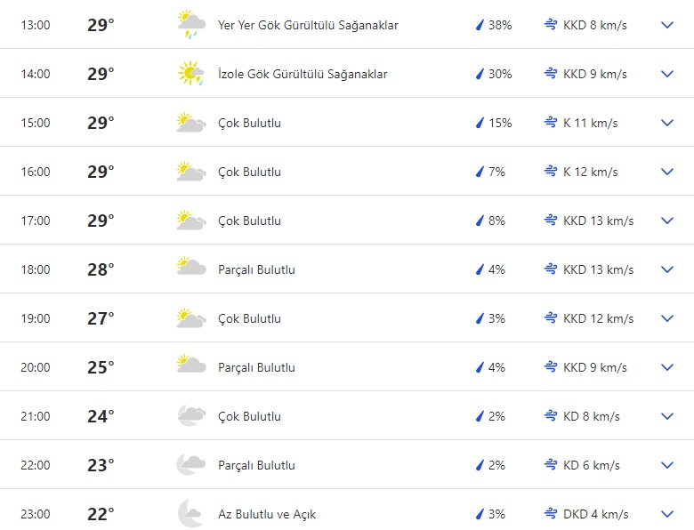 Yağmur öğleden sonra saat 13:00'te başlayacak ve saat 15:00'e kadar devam edecek. Sonrasında ise güneş tekrar yüzünü gösterecek.
