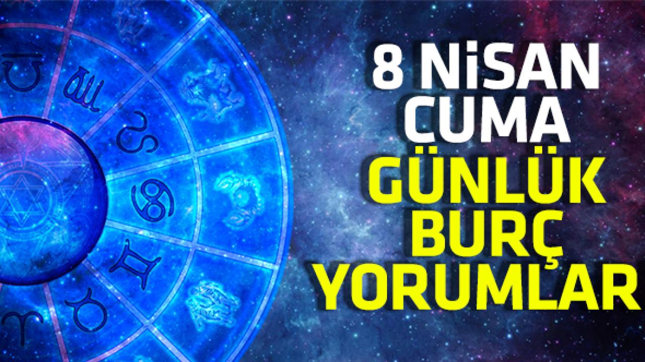 Astroloji dünyasında günlük burç yorumları en fazla ilgi gören konu ve okuyucular hayatlarına dair yaşanacakları okumak amacında. Bu sebeple de sorgulamalarda bulunuyor. 8 Nisan 2022 Cuma Koç, Boğa, İkizler, Yengeç, Aslan, Başak, Terazi, Akrep, Yay, Oğlak, Kova ve Balık burç yorumları haberimizde yer alıyor.