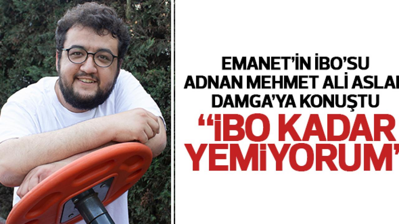 Kanal 7 ekranlarında pazartesiden cumaya yayınlanan günlük dizi Emanet'in kadrosunda bulunan ve İbo karakterini canlandıran Adnan Mehmet Ali Aslan DAMGA'ya konuştu. Aslan dizide oynadığı rol için; 'İbo kadar yemek yemiyor ve kendime bakmıyorum' dedi.