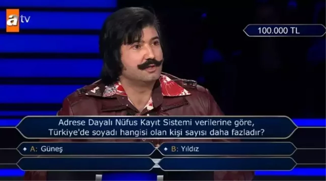 ATV ekranlarında yayınlanan Kim Milyoner Olmak İster, her hafta izleyicilere bilgi dolu ve heyecan verici anlar yaşatmaya devam ediyor. Oktay Kaynarca'nın başarılı sunumu eşliğinde, birbirinden farklı kategorilerde sorularla yarışmacıları ve ekran başındaki izleyicileri bilgi yolculuğuna çıkaran program, son bölümüyle yine merak uyandırmayı başardı. "Adrese Dayalı Nüfus Kayıt Sistemi verilerine göre, Türkiye'de soyadı hangisi olan kişi sayısı daha fazladır?" sorusu, programın son bölümünde hem yarışmacıyı hem de ekran başındakileri düşündürdü. Peki, bu sorunun cevabı neydi? İşte detaylar!