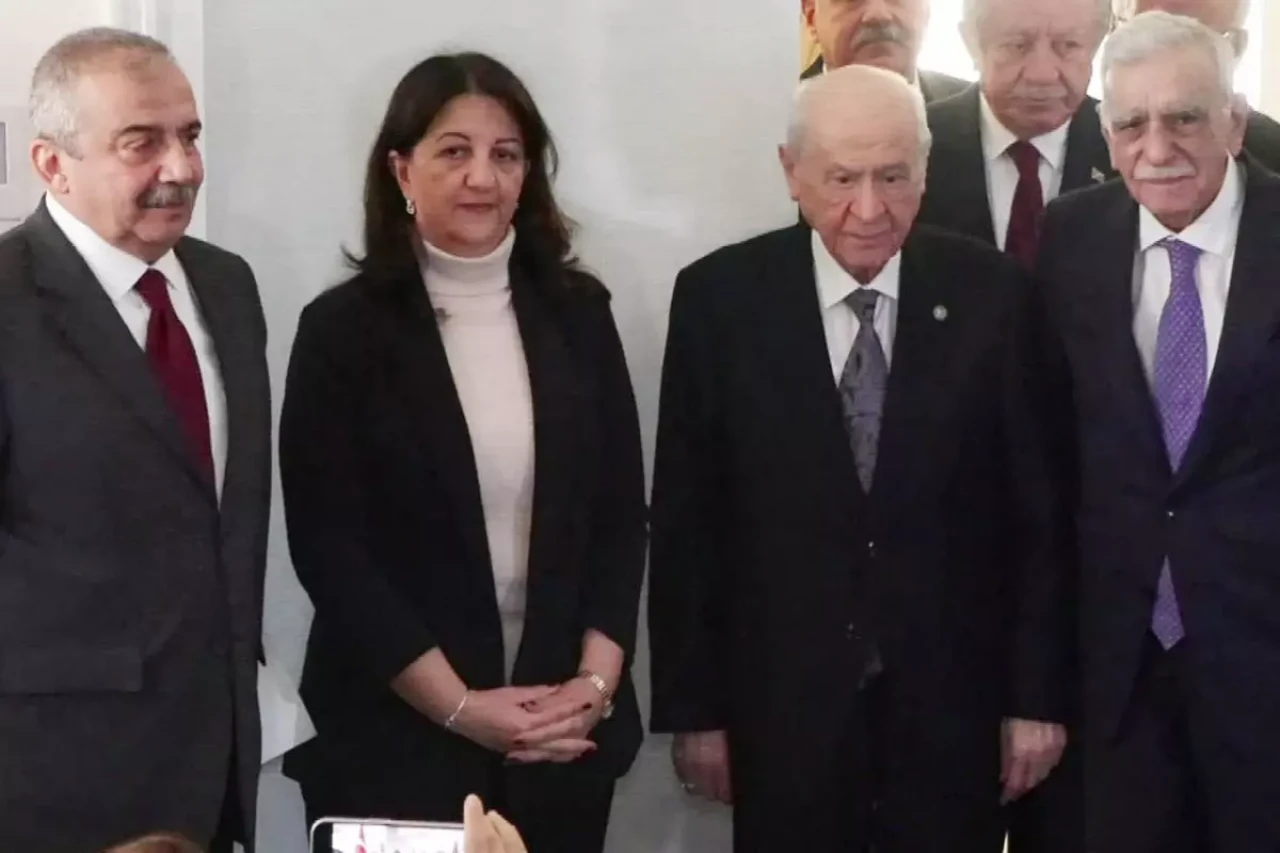 Saat 13.00 itibarıyla TBMM Başkanı Numan Kurtulmuş ile bir araya gelen DEM Parti heyeti, ardından Devlet Bahçeli’nin makamına geçti. Heyette, İstanbul Milletvekili Sırrı Süreyya Önder, Van Milletvekili Pervin Buldan ve kayyum kararıyla görevinden alınan Mardin Büyükşehir Belediyesi eski başkanı Ahmet Türk yer aldı.