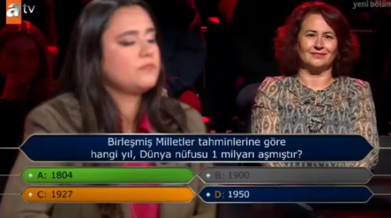 ATV ekranlarında yayınlanan Kim Milyoner Olmak İster programı, hem eğlendirirken hem de izleyicilerin bilgilerini sınayan sorularıyla dikkat çekiyor. Son bölümlerde izleyicilerin karşısına çıkan bir soru, dünya nüfusunun 1 milyar sınırını hangi yıl geçtiğiyle ilgiliydi. Yarışmayı izleyen birçok kişi, Birleşmiş Milletler tahminlerine göre dünya nüfusunun 1 milyarı ne zaman aştığını merak etmeye başladı. İşte bu sorunun doğru cevabı ve dünya nüfusunun büyüme sürecine dair tüm detaylar.