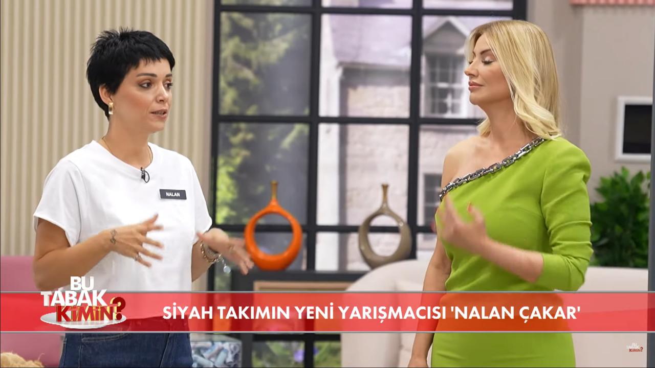 Milyonlarca kişi tarafından izlenen Bu Tabak Kimin'de yeni bir haftaya daha merhaba denildi. Songül Karlı'nın sunduğu programda dün yeni bir yarışmacı daha rekabete dahil oldu. Kendisine verilen sürede birincilik için yarışacak Nalan Çakar, güzelliği ile dikkat çekerken hakkında da çok sayıda sorgulama yapılarak bilgi sahibi olmaya çalışıyor.