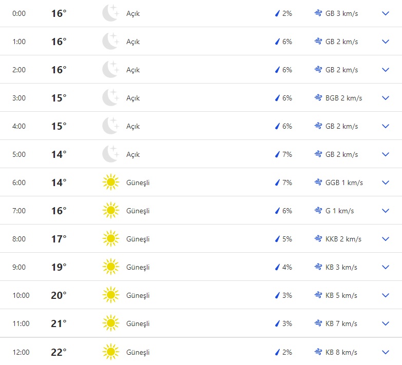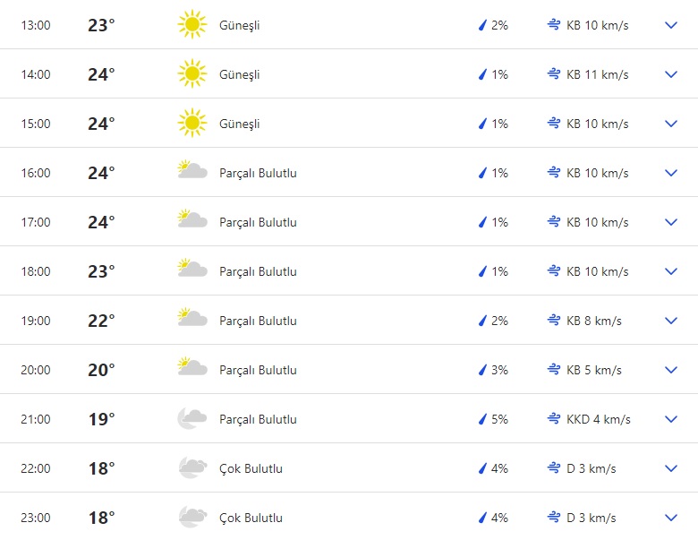 Bursa 18 Mayıs 2024 saatlik hava durumu