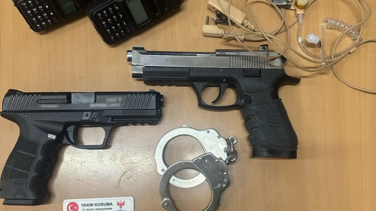 D.İ. (19) ve S.E. (25) isimli şahısların üst aramasında; 2 adet havalı tabanca, telsizler ve kulaklıkları, 2 kelepçe, polis ve koruma rozeti taşıyan cüzdanlar ile “yakın koruma” yazılı kimlik kartları ele geçirildi. Şahısların güvenlik görevlisi izlenimi oluşturacak şekilde sahte ekipmanlarla alanda bulunması dikkat çekti.