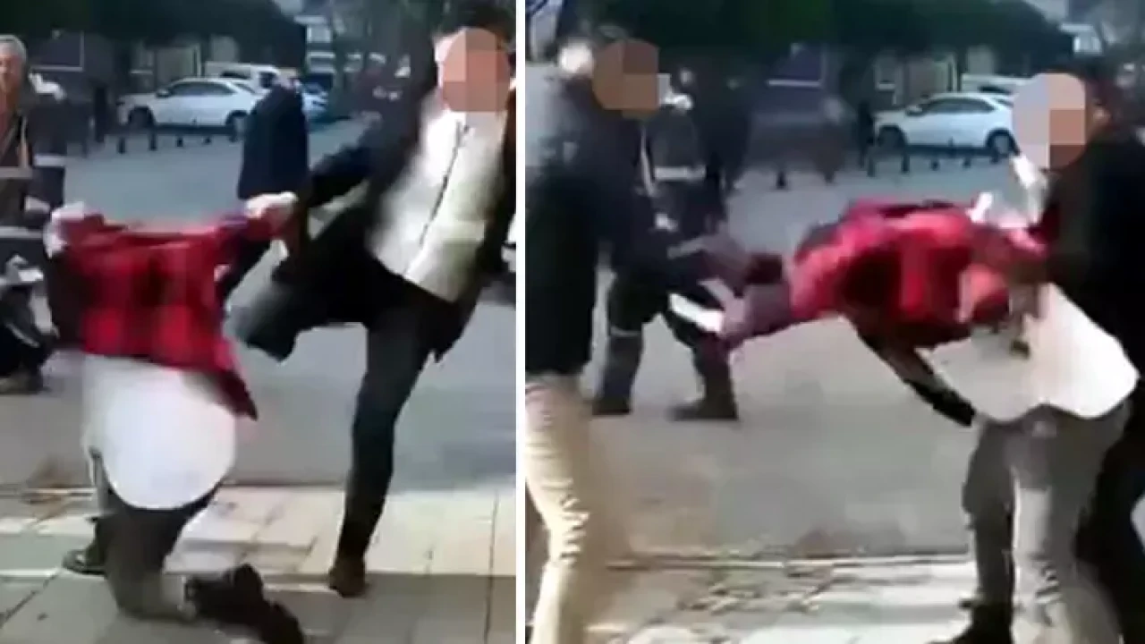 O anlar cep telefonu kamerasıyla kaydedildi. Oktay A., kendisini darbedenlerin elinden kaçarak bir iş yerine sığındı.