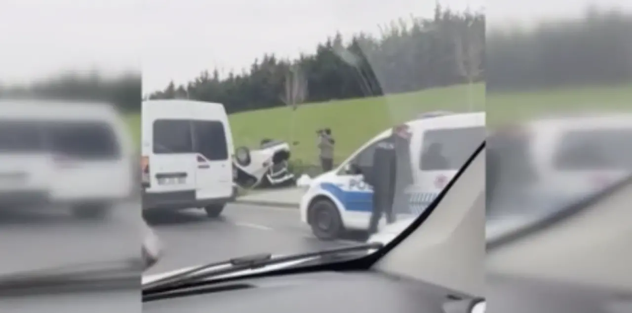 Olay, sabah saatlerinde yoğun trafiğin yaşandığı bölgede meydana geldi. Otomobilin ters dönerek durabildiği kazada, ihbar üzerine bölgeye polis, sağlık ve itfaiye ekipleri sevk edildi. Güvenlik önlemleri eşliğinde olay yerine ulaşan ekipler, araç içerisindeki kişilere müdahalede bulundu.