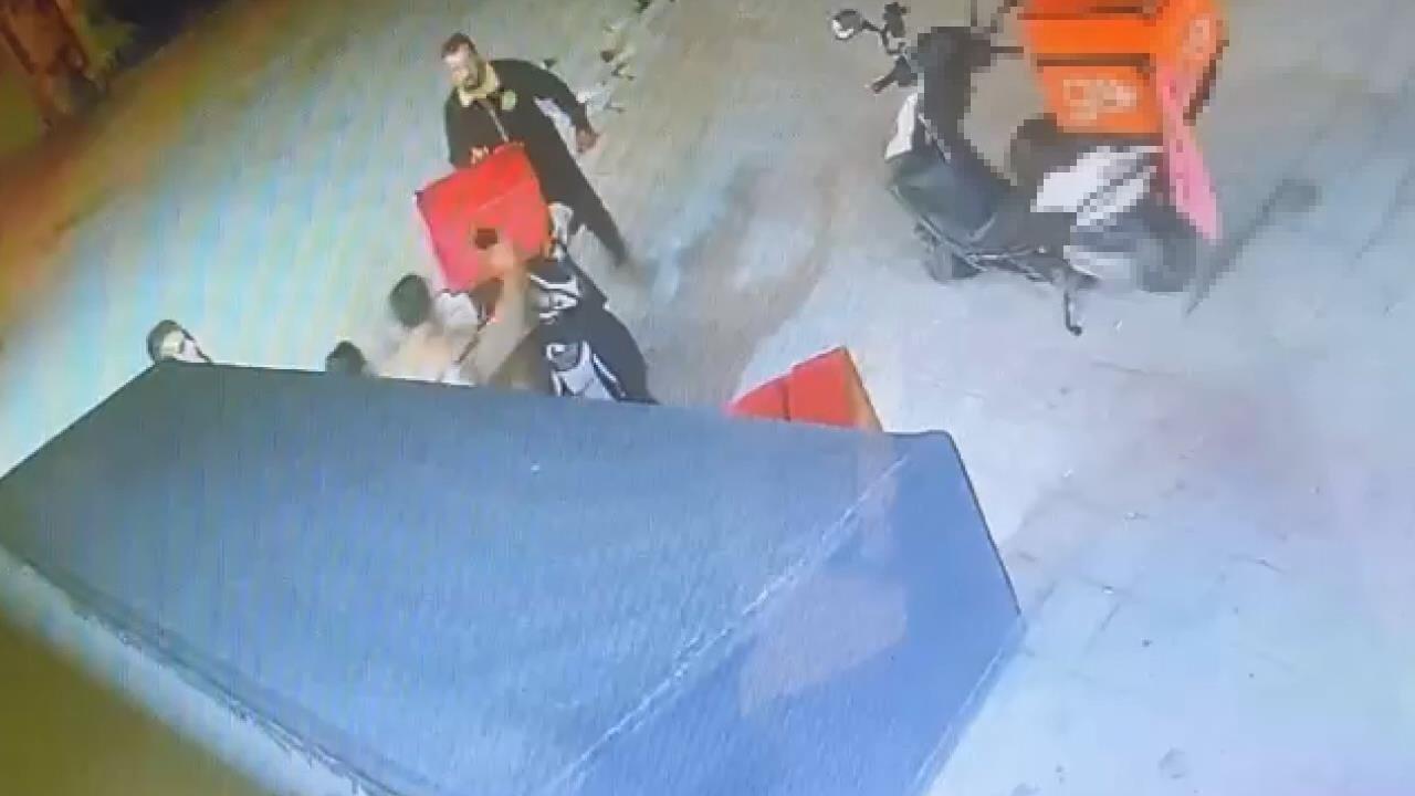 Motokurye Aktaş ile Karasu arasındaki kavga anları güvenlik kamerasına yansıdı. Görüntülerde, restoranın önünde tarafların kavga ettiği, çevredekilerin araya girmeye çalıştığı görülüyor.