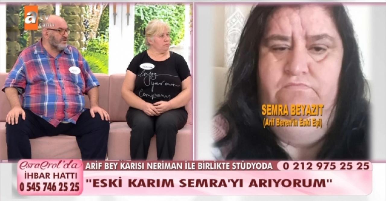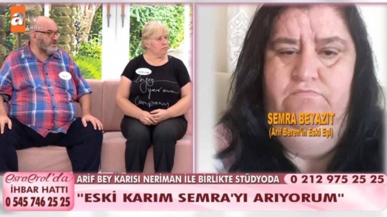 Bugün yayınlanan bölümü ile ekranlardaki yerini alan Arif Bey, eşini de yanına aldı ve eski eşinin kaybolduğunu anlattı. Bunun üzerine Semra Hanım'ın eşinin kendisini suçladığını söyleyip Esra Erol'dan yardım istedi. Kızının annesini bulmak isteyen Arif Bey, mutlu haber verebilmek için geldiğini söyledi. Kendisine annesini soran kızına nerede olduğunu söyleyebilmek adına Esra Erol'dan yardım istedi. Semra Hanım'ın Tekirdağ Muratlı'da yaşadığı ve 12 Temmuz'dan bu yana haber alınamadığı öğrenildi.