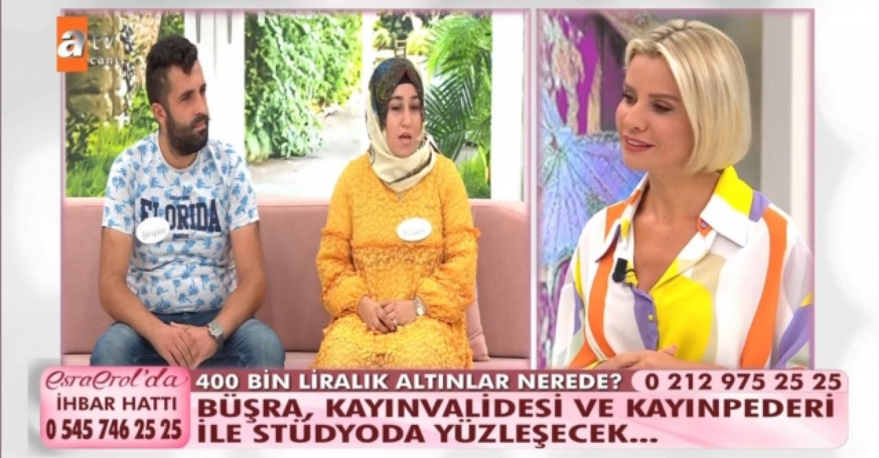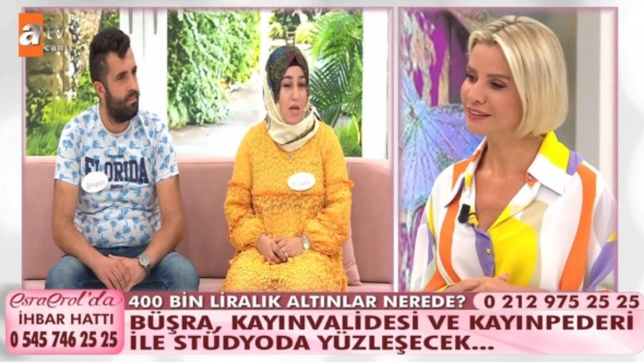 Esra Erol'da ... kimdir? sorusu günün cevabı en çok araştırılan konularından biri haline geldi. Hafta içi her gün yayınlanan bölümleriyle seyircilerinin karşısına çıkıp halkın umudu olan Esra Erol'da birçok faili meçhul cinayeti, soru işareti bulunan olayları, kayıpları ve aldatmaları işlemeyi sürdüren başarılı sunucu Esra Erol, ekipteki muhabir arkadaşları ve kamera arkasındaki yapım kadrosuyla birlikte yine olayları çözüme kavuşturma çalışacak. Günün konuklarından biri de Büşra ve Bayram çifti oldu ve iki gündür işlenen dosyaya devam edildi. Detaylar haberimizde yer alıyor.
