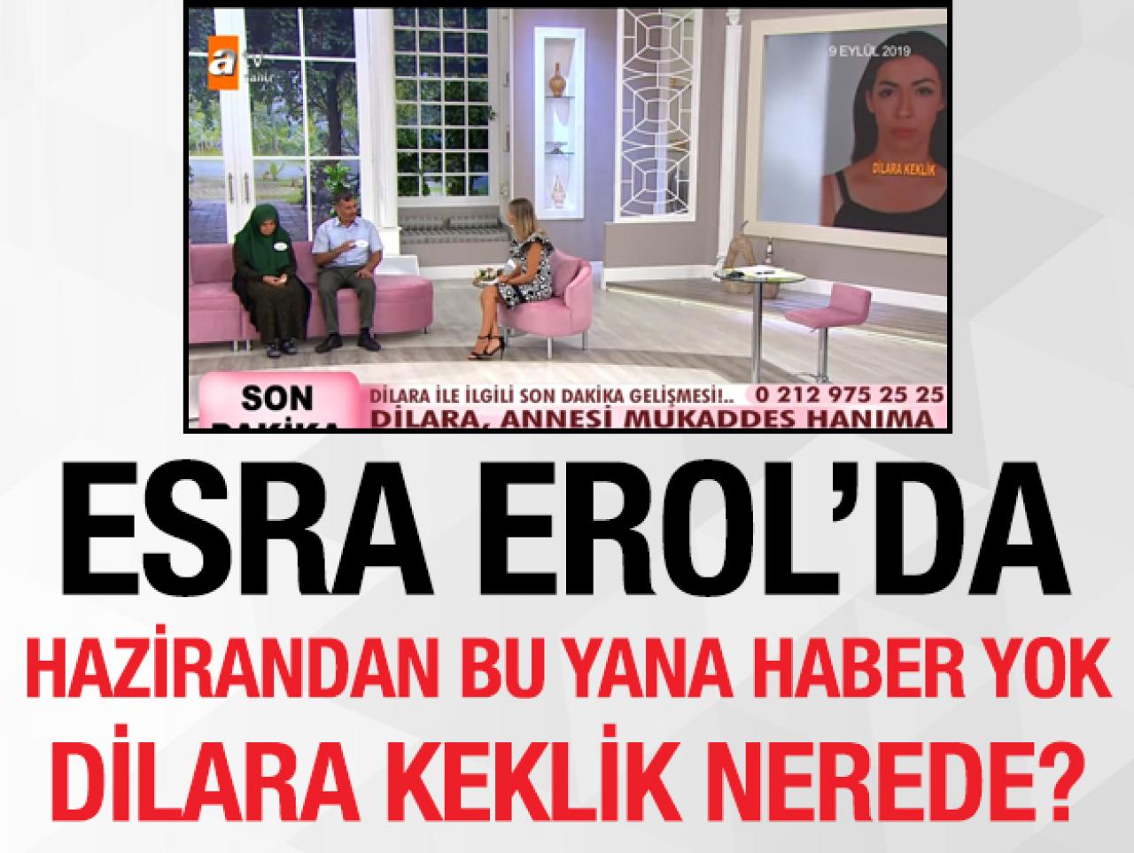 ATV'de yayınlanan Esra Erol'da programında yaşanan aile dramlarından biri de Keklik ailesinde yaşandı. Anne ve babasının stüdyoya gelerek 3 aydır kızlarından haber alamadıklarını söyleyerek yardım istediği Dİlara Keklik'in nerede olduğu merak ediliyordu. Çalıştığı yerdeki düzensiz saatlerden dolayı farklı davranışlar içerisine girdiği iddia edilen genç kızın arkadaşlarının yönlendirmesiyle tehlikeli ortamlarda çalışmaya başladığı öne sürüldü. Bir restoranda çalıştığı iddia edilen Dilara Keklik 21 yaşında. Lisanslı karateci. 20 madalyası var. Esra Erol'da programına çıkan anne ve baba kızlarına adeta haykırdı. Gelmeleri için yalvaran ebeveynler sadece kızlarını görmek istediklerini açıkladı. Annelik hakkını sorgulayan anneye karşı Dilara; "Sizi görmek istemiyorum" yanıtı verdi. 'Senin çalıştığın yeri görmek hakkım' açıklaması yapan Dilara'ya karşısında Esra Erol da yapıcı konuşmalar gerçekleştirdi ancak fayda vermedi. Mukaddes Hanım Türkiye'deki tüm ailelere seslendiğini belirtti. Elazığ'da çalıştığını öğrendikleri kızlarını geri getirmek isteyen aileye Dilara; "Bu sizi ilgilendirmez. Oraya gelmiyorum" dedi. dilara keklik Dilara keklik için sayısız ihbar olduğu açıklandı. Bir beyefendi de kendisinin saçlarını sarıya boyadığını ve gece saat 1'de gördüğünü söyledi. Programa yarın devam edilecek. esra erol'da gamze erdem esra erol'da avukat hülya kuran