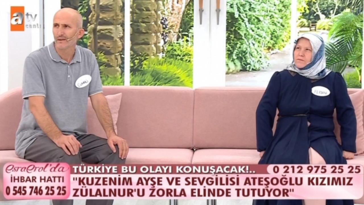 Bugün Esra Erol'da programında anne ve babasının stüdyoya gelerek bulunmasını istediği Zülalnur Çetin 19-20 yaşında. İmam Hatip Lisesi mezunu olan genç kız kamu yönetimi bölümünü kazandı ve üniversiteye gidecekti. Annesi Ferdanur ve babası Cumali Çetin'in iddiasına göre Ayşe Temel ve Ateşoğlu Dal, Zülalnur'u zorla alıkoydu.