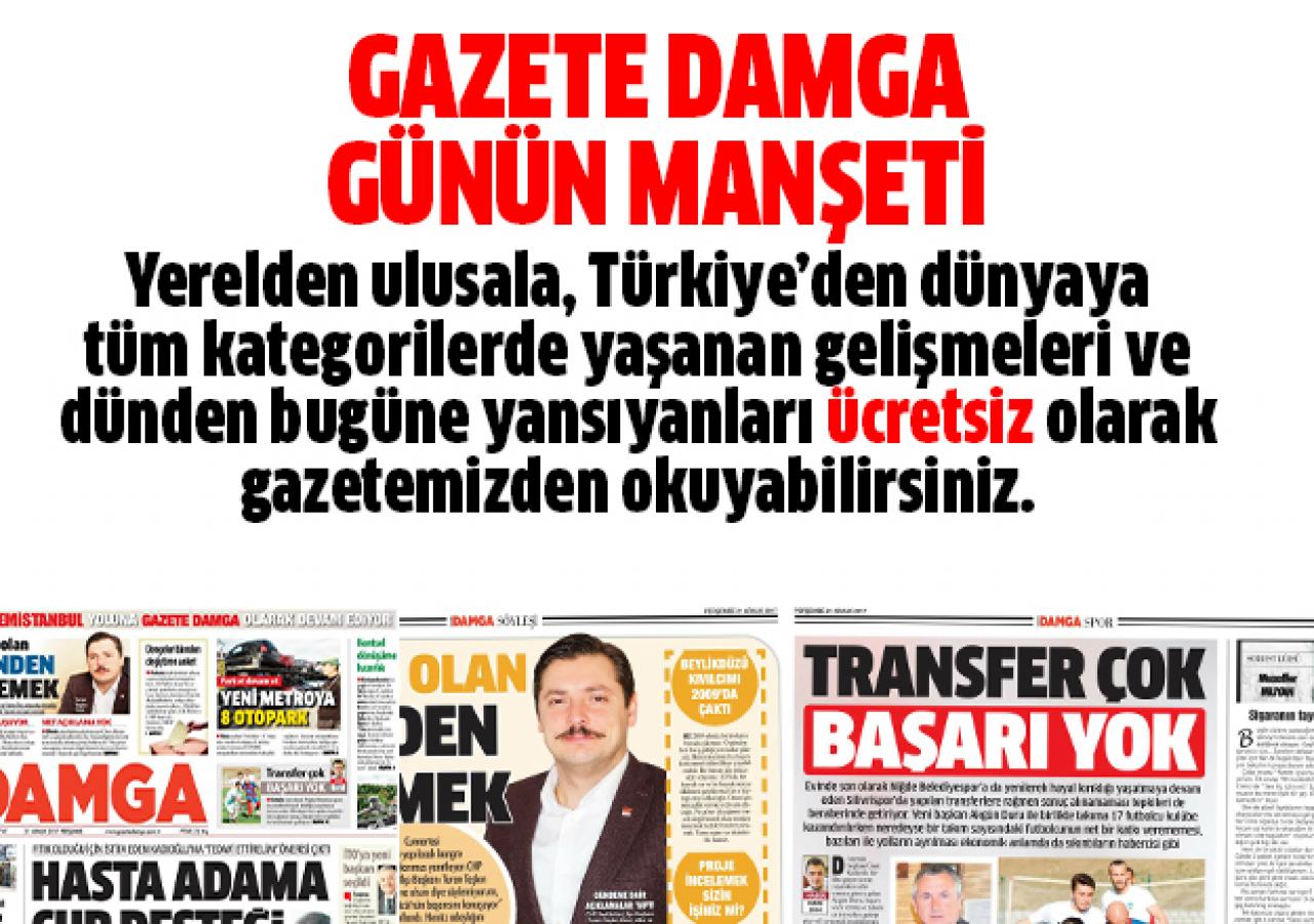 İnternette en çok aranan konulardan bir tanesi de gazete oku terimi. Ulusal gazetelerde bahsedilmeyen pek çok konu yerele hitap eden yayın organlarında mevcut. Bunlardan bir tanesi de Gazete Damga. Kurulduğu günden bu yana özellikle yerel politika ve gündem konularında fark yaratan gazetemizin her yeni sayısı merakla bekleniyor ve hem basılı olarak hem de sanal ortamda sürekli okunuyor. Bugün de dopdolu içeriği ile yayınlanan sayının özetini sizleri çin hazırladık. Gazetenin tamamı için aşağıdaki görsele tıklamanız yeterlidir.