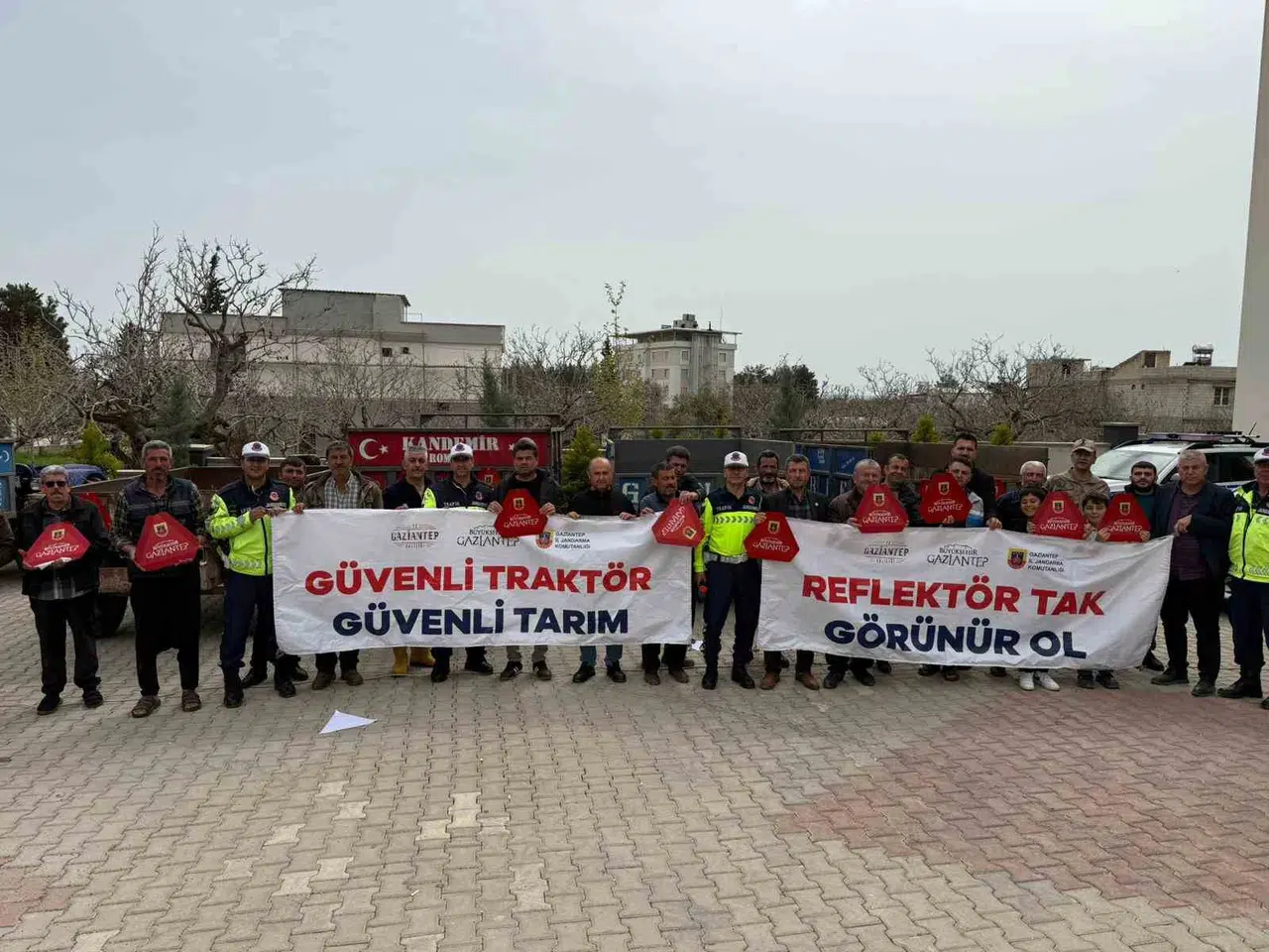 Gaziantep İl Jandarma Komutanlığı, kırsal yollarda traktörlerin görünürlüğünü artırmak amacıyla başlattığı proje ile yüzlerce sürücüye hayati önem taşıyan ekipman desteği sağladı.