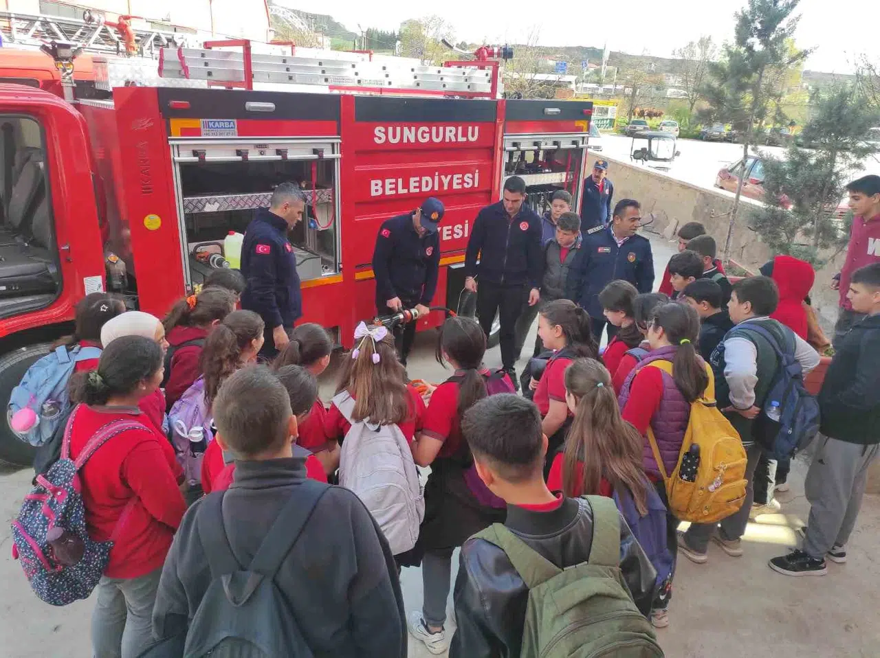 Sungurlu Belediyesi İtfaiye Müdürlüğü’nün kapılarını açtığı Atatürk Ortaokulu öğrencileri, olası afetlere karşı hayati bilgilerle donatılarak bilinçlendirildi.