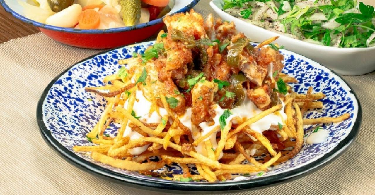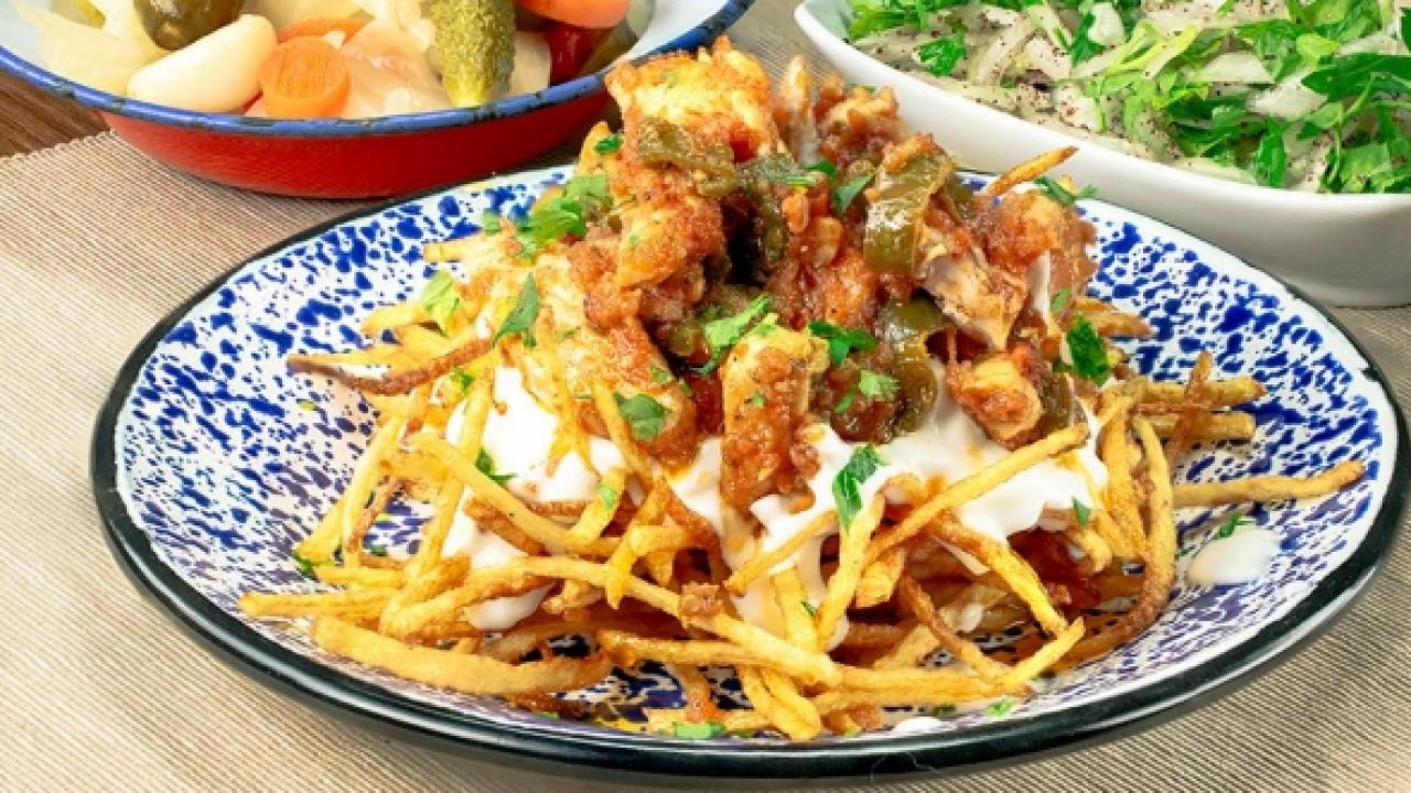 Servis tabağına aldığınız patateslerin üzerine çırpılmış sarımsaklı yoğurdu dökün ve üzerine pişirdiğiniz tavuklu harcı ekleyin. Tavuk çökertme afiyetle yenmeye hazır!