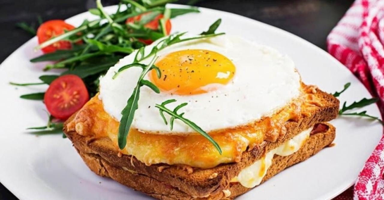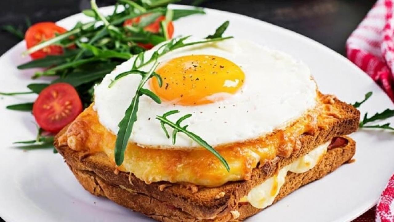 İki taraflı bir elektrikli ızgarayı orta-yüksekten yükseğe yaklaşık 20 dakika önceden ısıtın veya fırını önceden 300 dereceye ısıtın ve bir dökme demir tavayı sobanın üzerinde yaklaşık 5 dakika önceden ısıtın. Beşamel sos hazırlayın: Küçük bir tencerede orta ateşte 1 yemek kaşığı tereyağını eritin. Kabarcıklar azaldığında, unu ekleyin ve 1 dakika kuvvetlice çırpın. Yavaş yavaş sütü pürüzsüz olana kadar çırpın. Bir kaynama aşamasına getirin ve kalın olana kadar pişirin. İki dilim ekmeği sosla bolca yayın. Her birinin üzerine iki dilim jambon koyun ve her birinin üzerine bir dilim peynir koyun; jambon ve peynir ekmeğin kenarlarıyla hafifçe örtüşmelidir. Her birini bir dilim ekmekle doldurun. Küçük bir tencerede kalan 4 yemek kaşığı tereyağını eritin. Sandviçlerin her iki tarafını da tereyağ ile fırçalayın, kenarlarının iyice kapandığından emin olun. Bir kalbur kullanıyorsanız, peyniri yüzü aşağı bakacak şekilde yerleştirin, kalburu kapatın ve ekmek kızarana ve peynir sızıp köpürene kadar pişirin. Bir tava kullanıyorsanız, sandviçleri peynirli tarafı aşağı bakacak şekilde yerleştirin ve iyice kızarana kadar ocakta pişirin, sonra tekrar çevirin ve kahverengileştirin. Tavayı fırına aktarın ve ısınana ve peynir köpürene kadar pişirin. Bu arada bir tavada yumurtaları az yağda kızartın. Her sandviçin üzerine bir kızarmış yumurta sürün. Sıcak servis yapın.