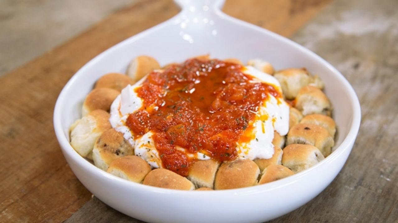 Domates sosunu isteğe bağlı olarak mantının yanında ya da üzerine gezdirerek servis edebilirsiniz.