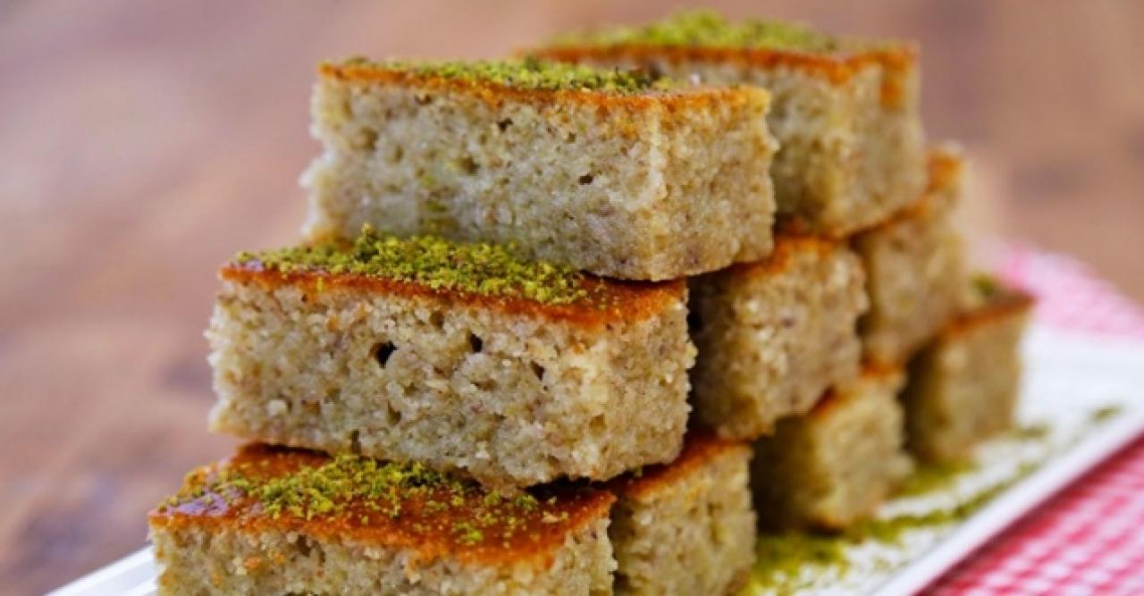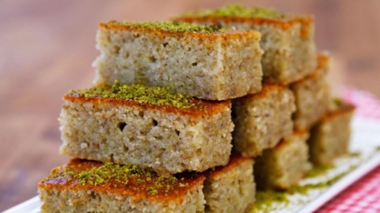 - Revani piştikten sonra fırından alın ve şerbetini verin. Tatlı oda sıcaklığına gelince üzerini fıstıkla süsleyip servis edin.